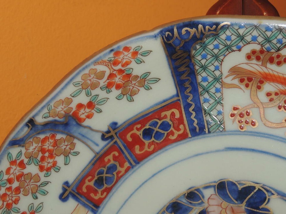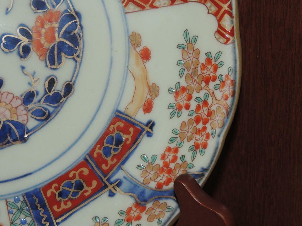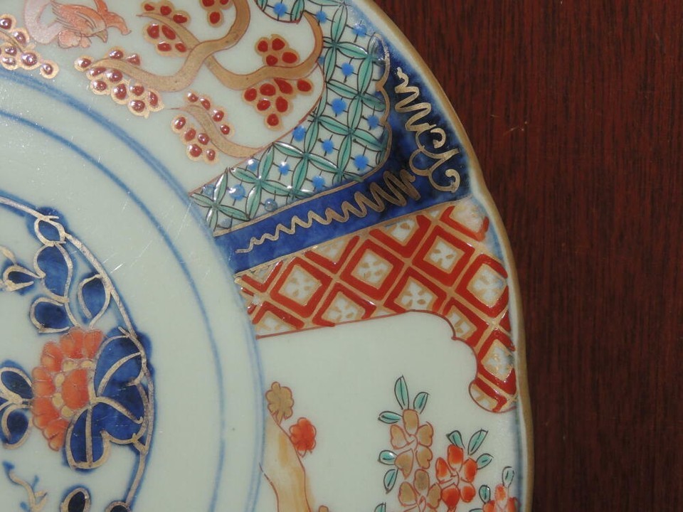 - Antique Plate 8.5" Fuki Choshun blue red green marked Arita Imari Meiji cobalt