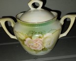- Antique RS Prussia Green porcelain Pink & White rose vanity sugar jar bowl