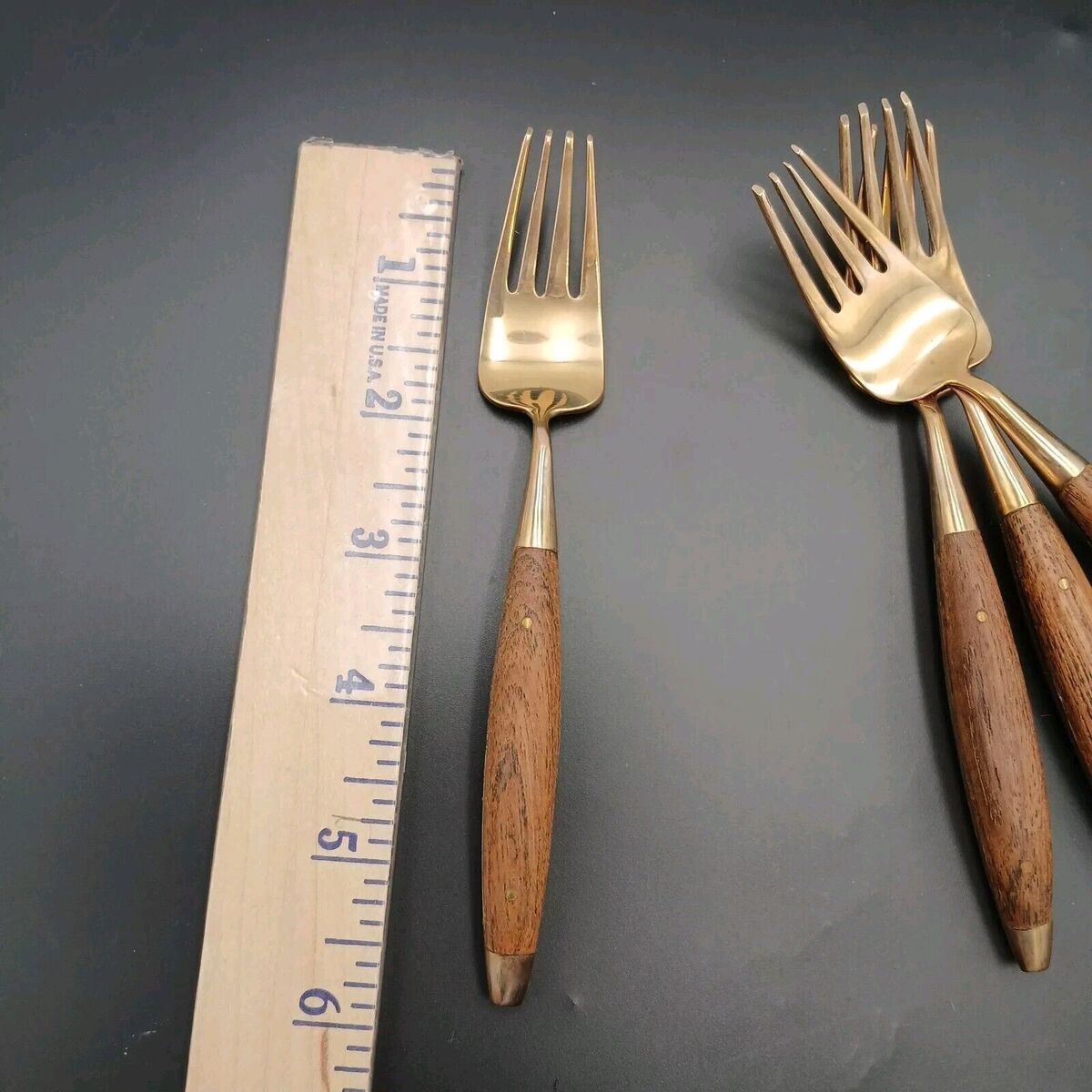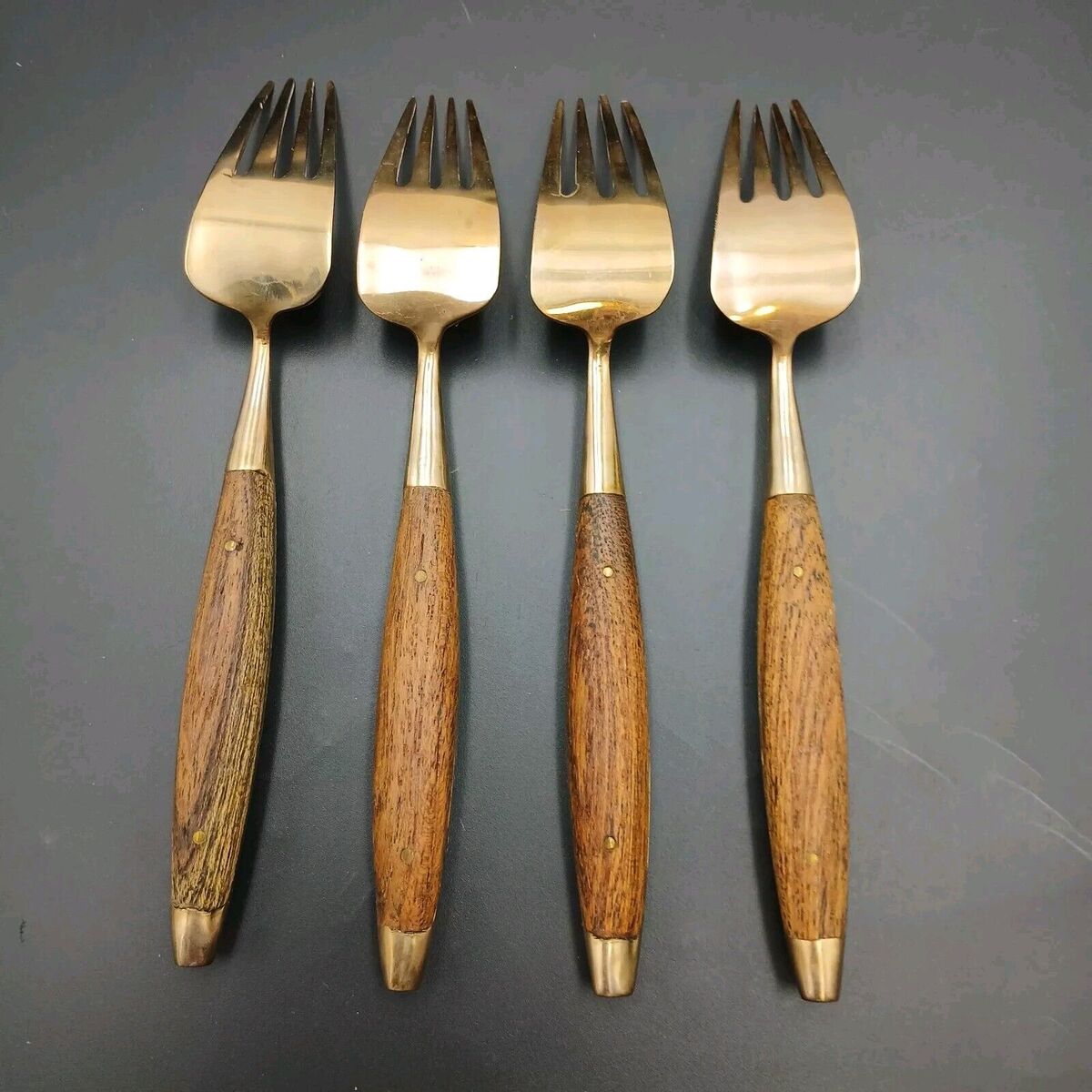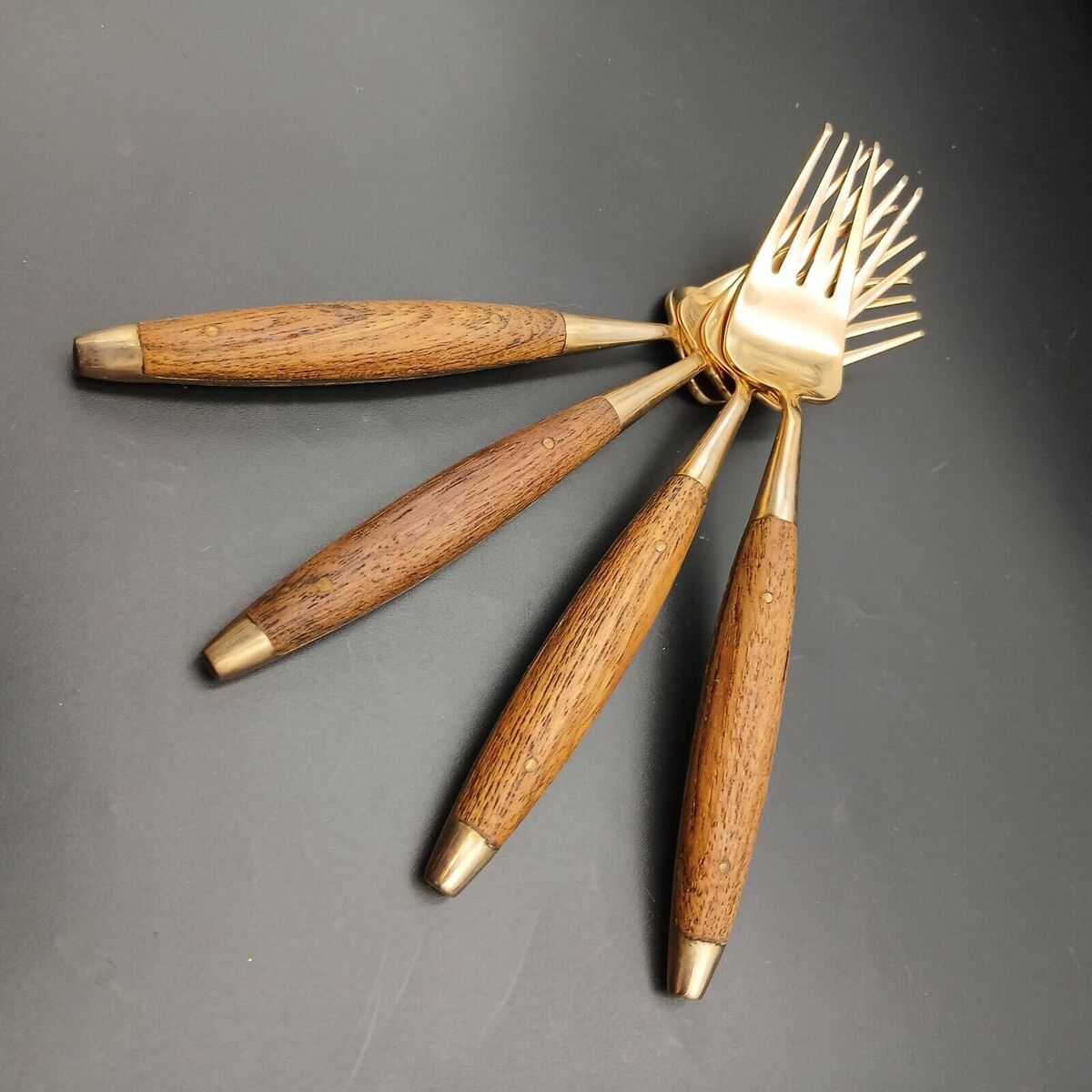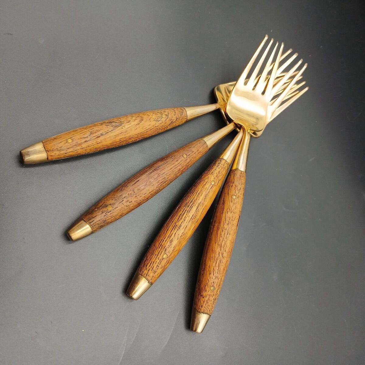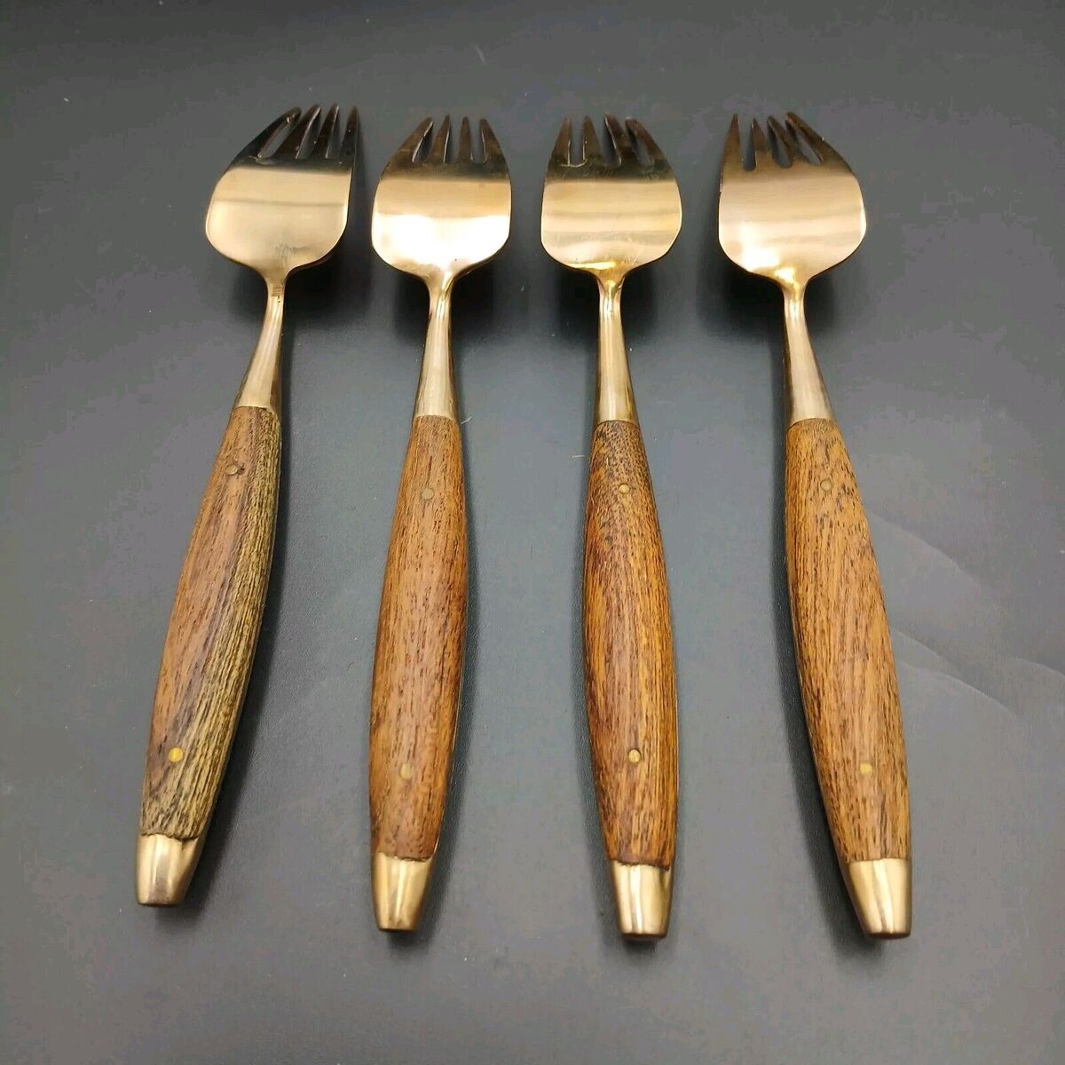 - Antique Rosewood Bronze and Wood Set of 4 Salad Fork Thailand Rare