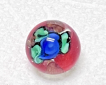 - Antique Round Glass Paperweight Button Blue Red Green Flower 3/8" Wide 1/2" Deep
