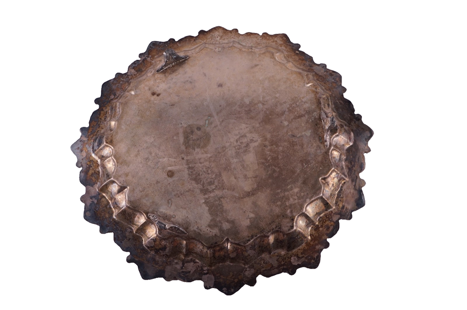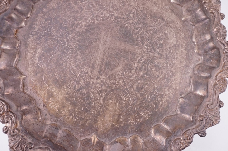 ANTIQUE SILVER-COLORED PLATE, 17 inch diameter