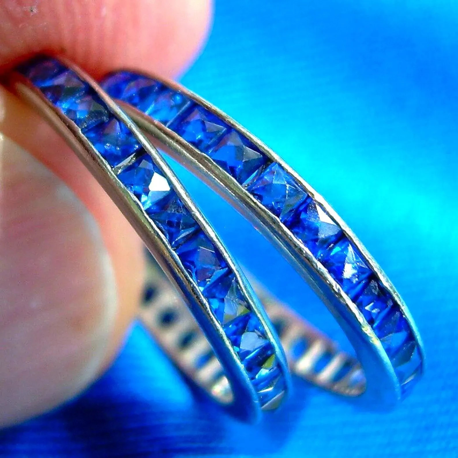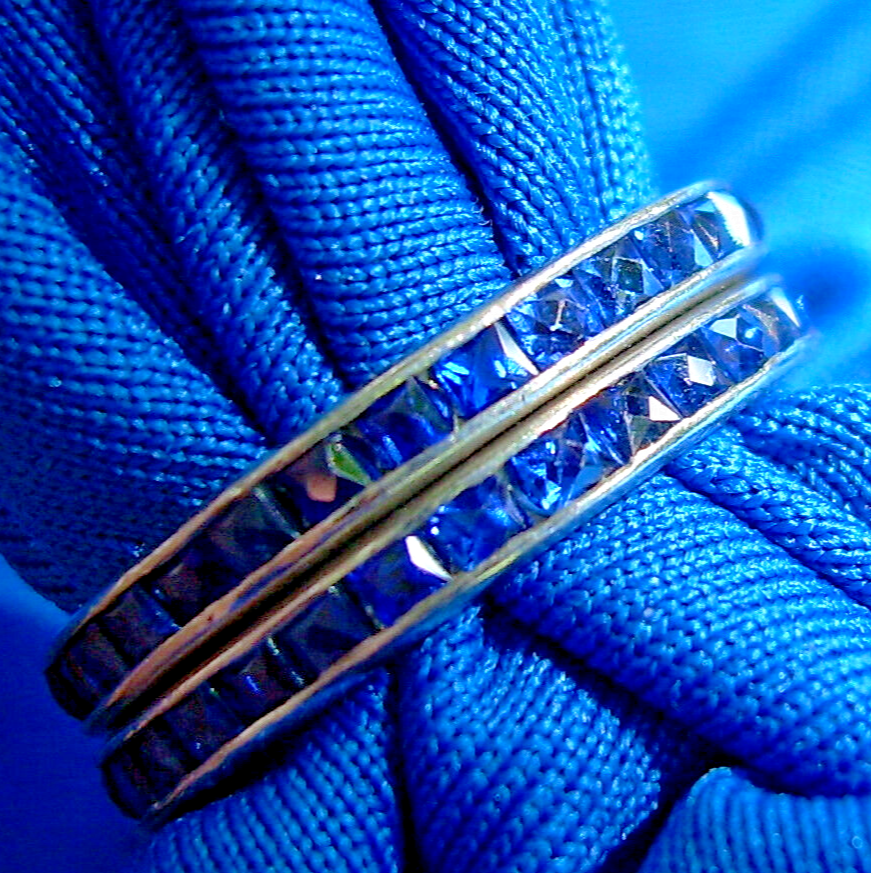 Special deco eternity rings featuring beautiful French cut blue sapphires.