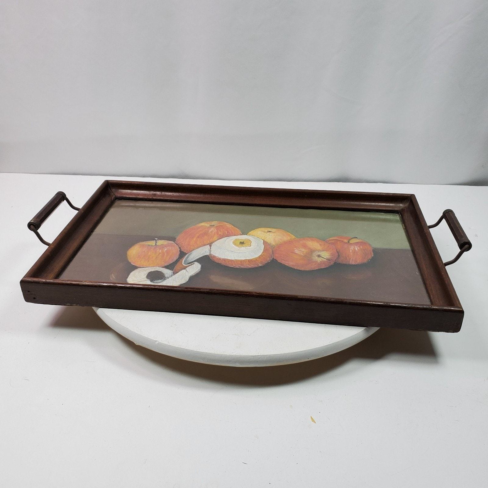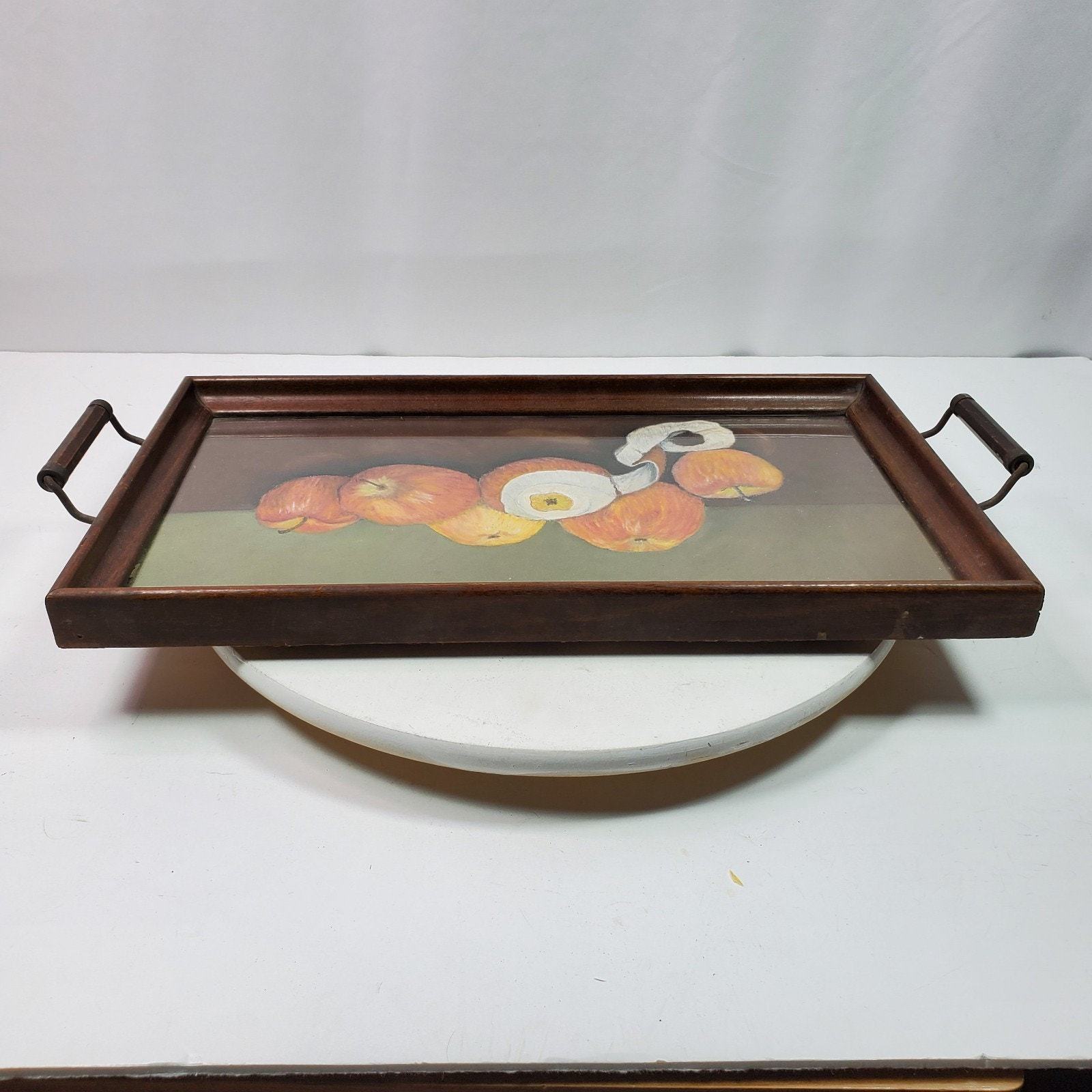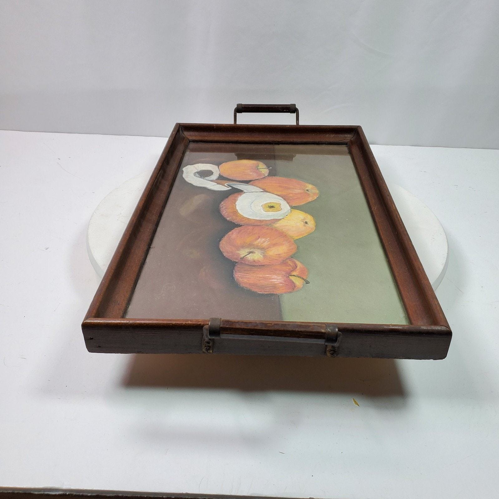 - Antique Serving Tray Wall Art Fruit Under Glass Wood w/ Handles 17x10 Inch