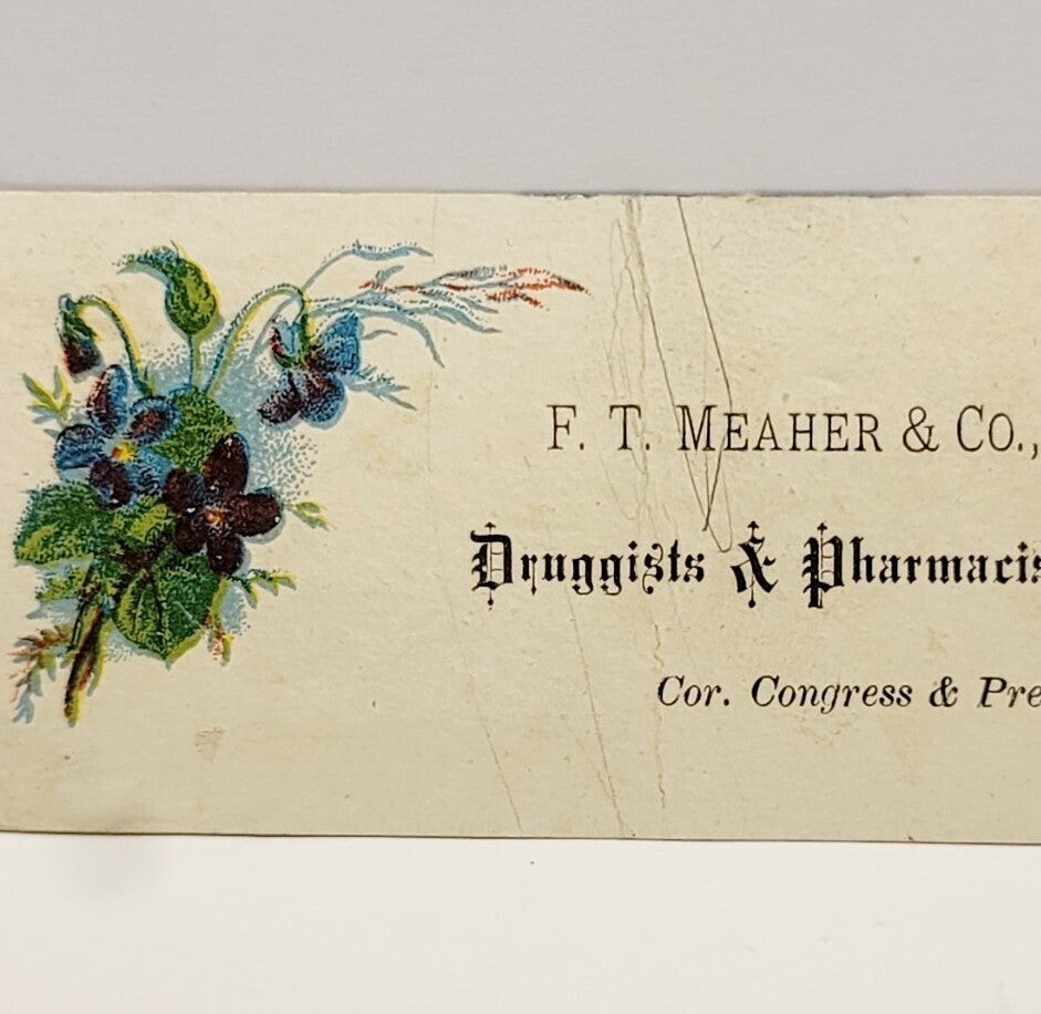 Antique Victorian c1890s Medical Business Card FT Meaher Bangor Maine 3.25 x 1.75 Pharmacy