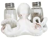 Antique White Nautical Marine Cephalopod Octopus Salt Pepper Shakers Holder Set
