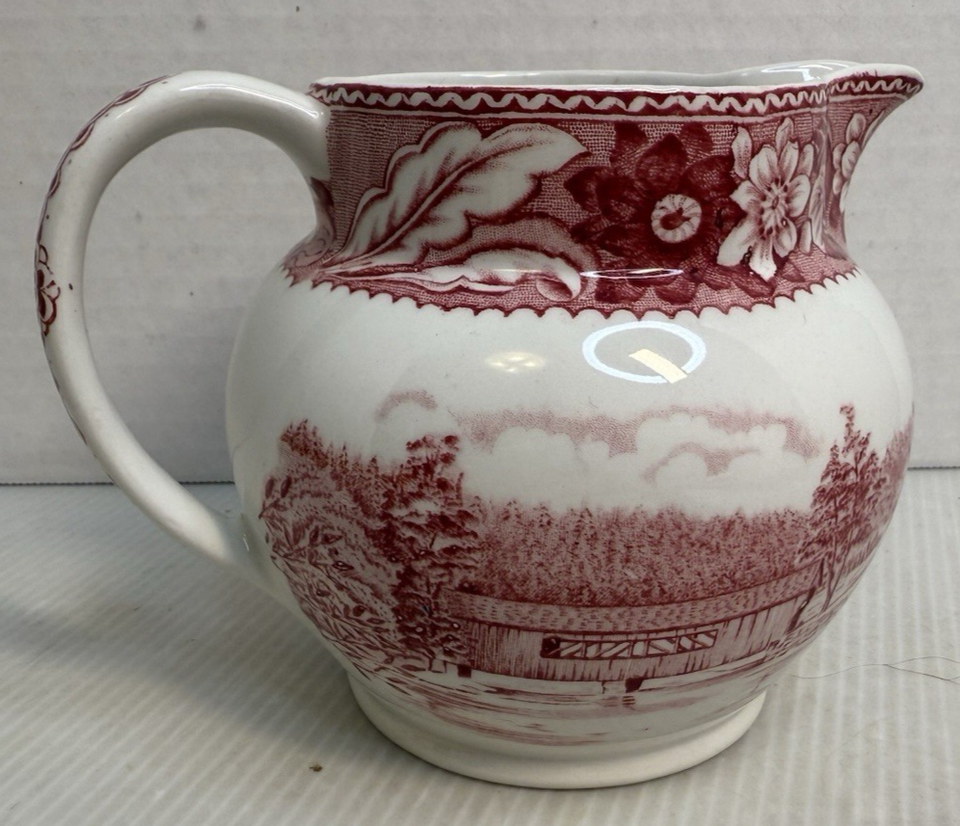 - Antique Wood & Sons Woods Burslem England Covered Bridges Pitcher 5"
