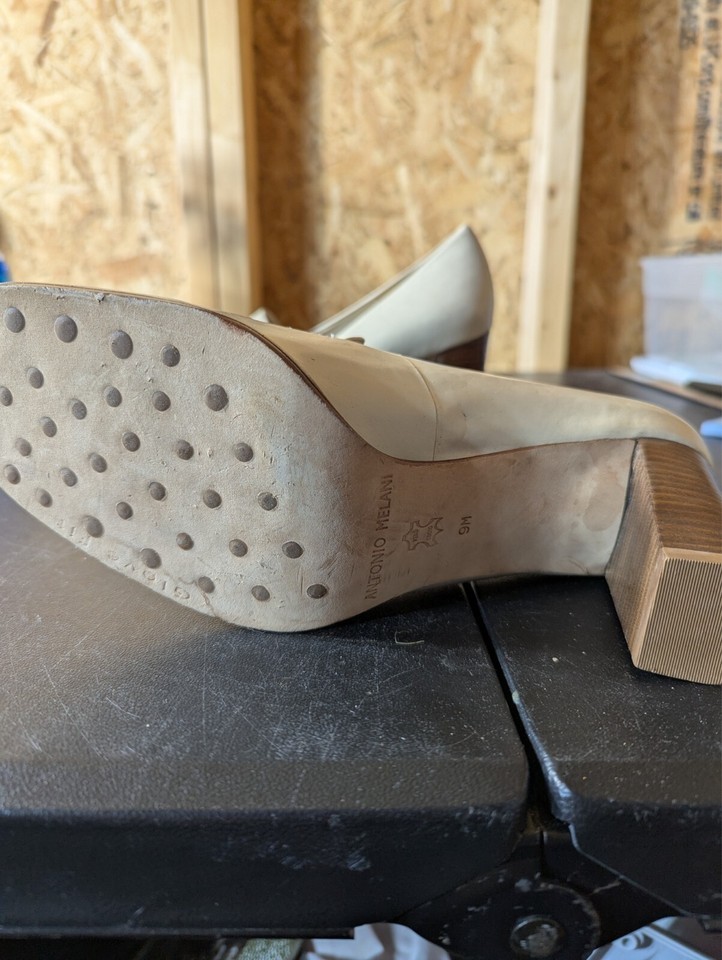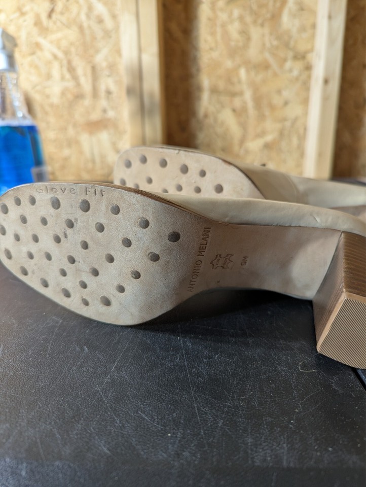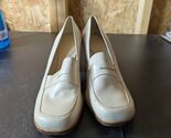 - ANTONIO MELANI cream LEATHER BLOCK HEEL LOAFERS Womens 9 Beige Pretty Glove Fit