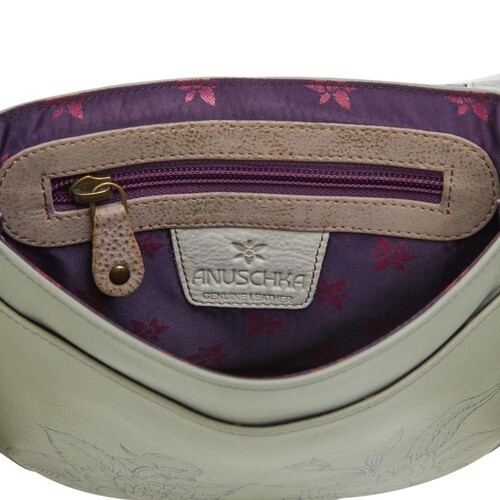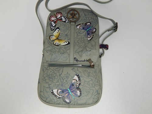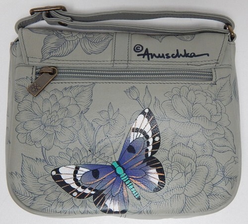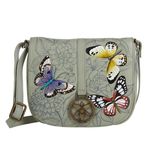 - Anuschka Womens Hand-Painted Leather Saddle Crossbody Bag Butterfly Garden Taupe