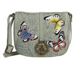 Anuschka Womens Hand-Painted Leather Saddle Crossbody Bag Butterfly Garden Taupe