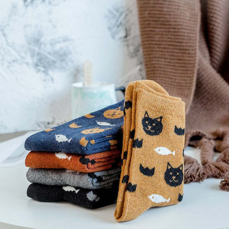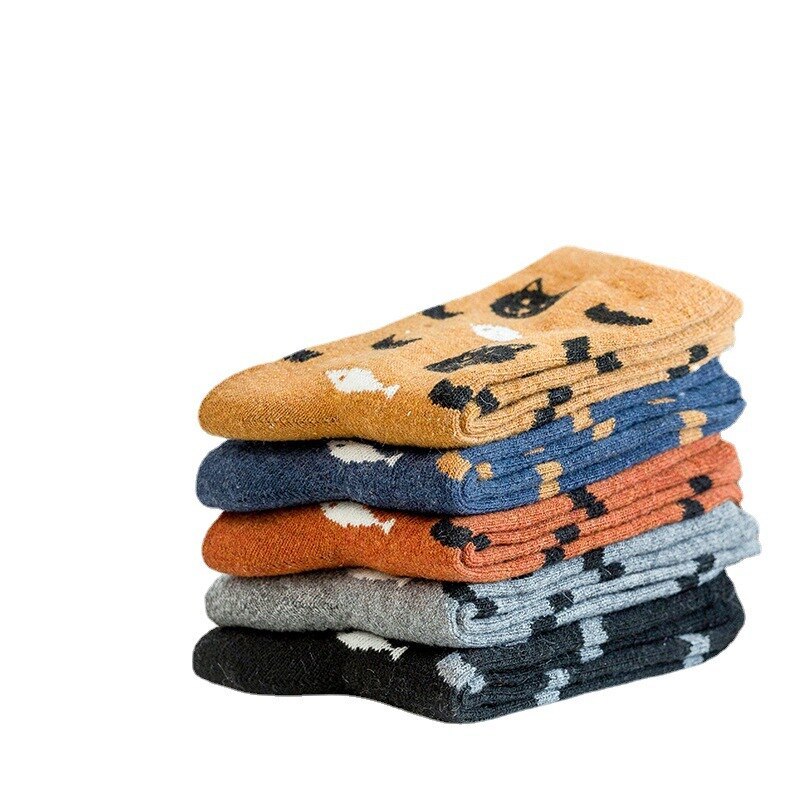 - Anysox 5 Pairs Size 5-9 Mix Color Kittens Winter Thick And Warm Wool Socks