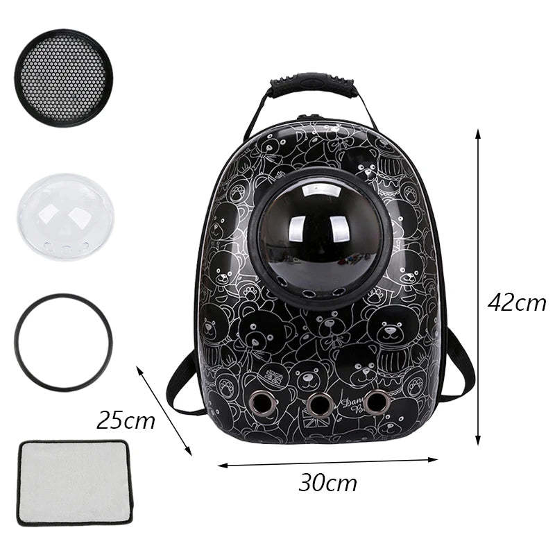 - Anywags Pet Carrier Black Bears Print Breathable Space Capsule Travel On the Go