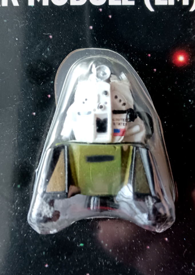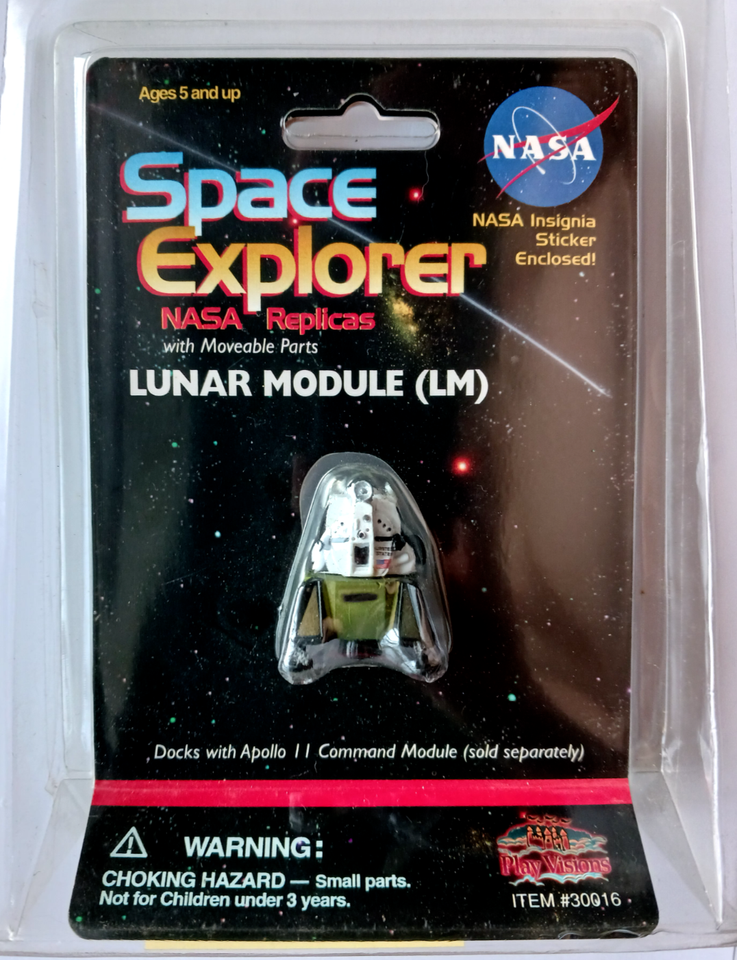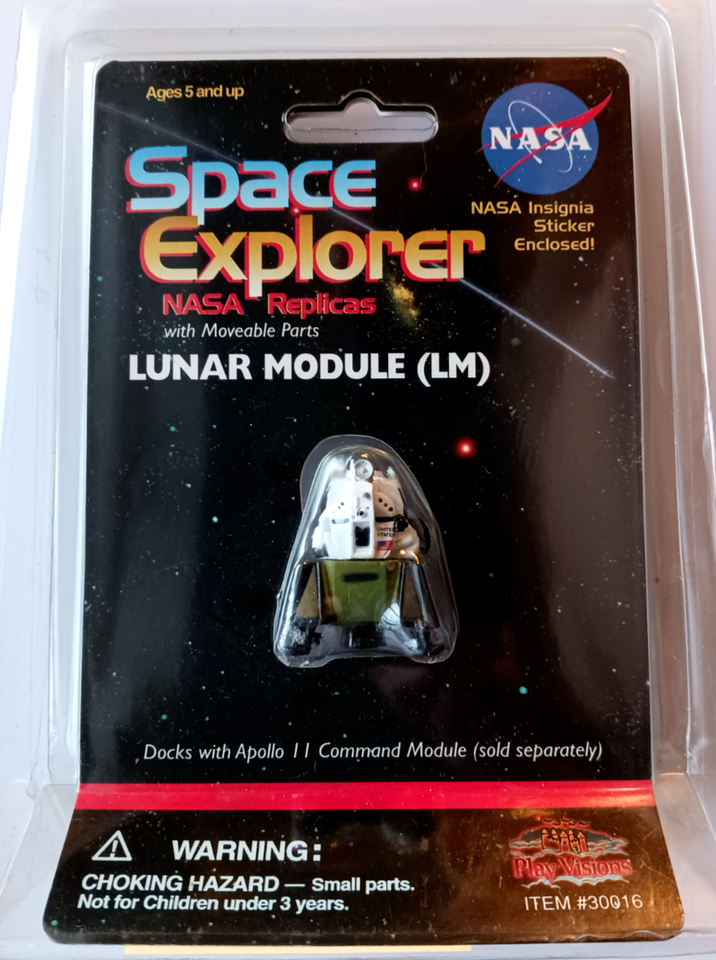 This is a still new sealed in package condition, small scale Apollo Lunar Lander, the bug-looking module used to land astronauts on the Moon for the Apollo missions, part of the Space Explorers series, from 1998. It's official name was LEM, for Landing Excursion Module.