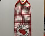 For the lovers of Apple Cider.. this hanging towel is topped in white yarn, and edged in red yarn with an apple button.