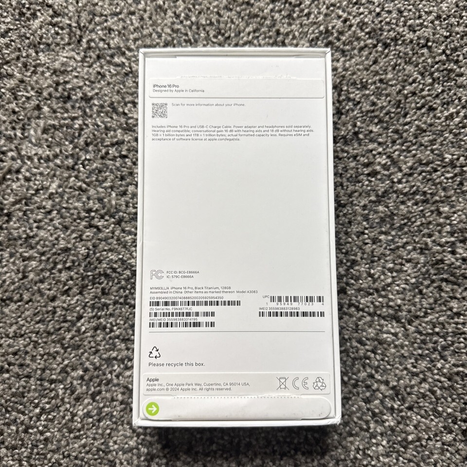 - Apple iPhone 16 Pro EMPTY BOX ONLY Black Titanium 128 Box Only Black