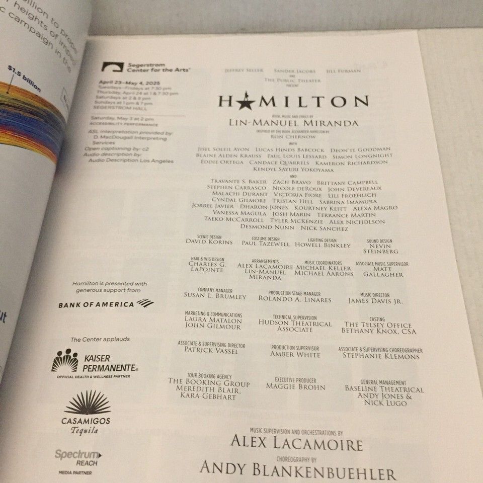 April 2025 Segerstrom Center for the Arts Hamilton Program/Magazine