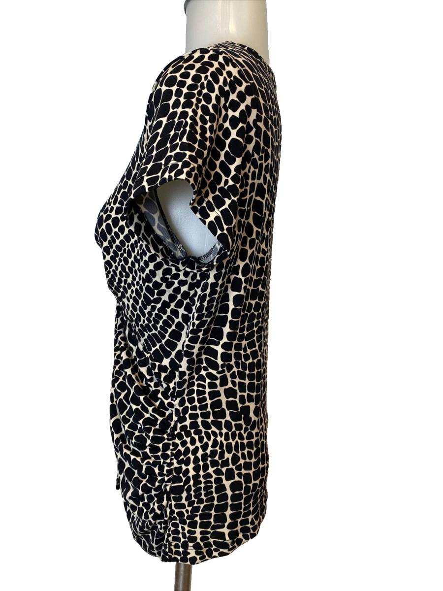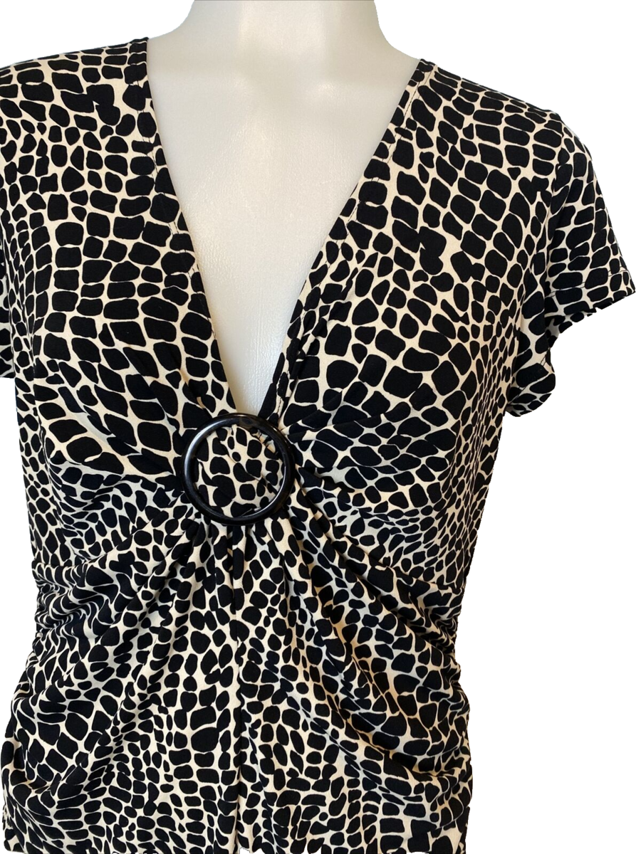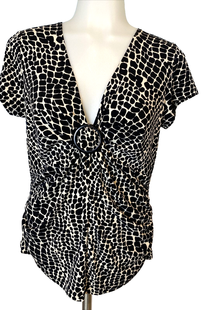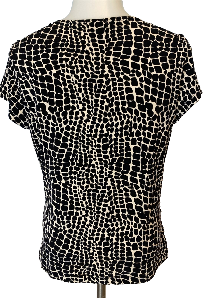 Apt. 9 Stretch Black and Off White Print V Neck Short Sleeve Knit top Size M
