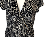 - Apt. 9 Stretch Black and Off White Print V Neck Short Sleeve Knit top Size M