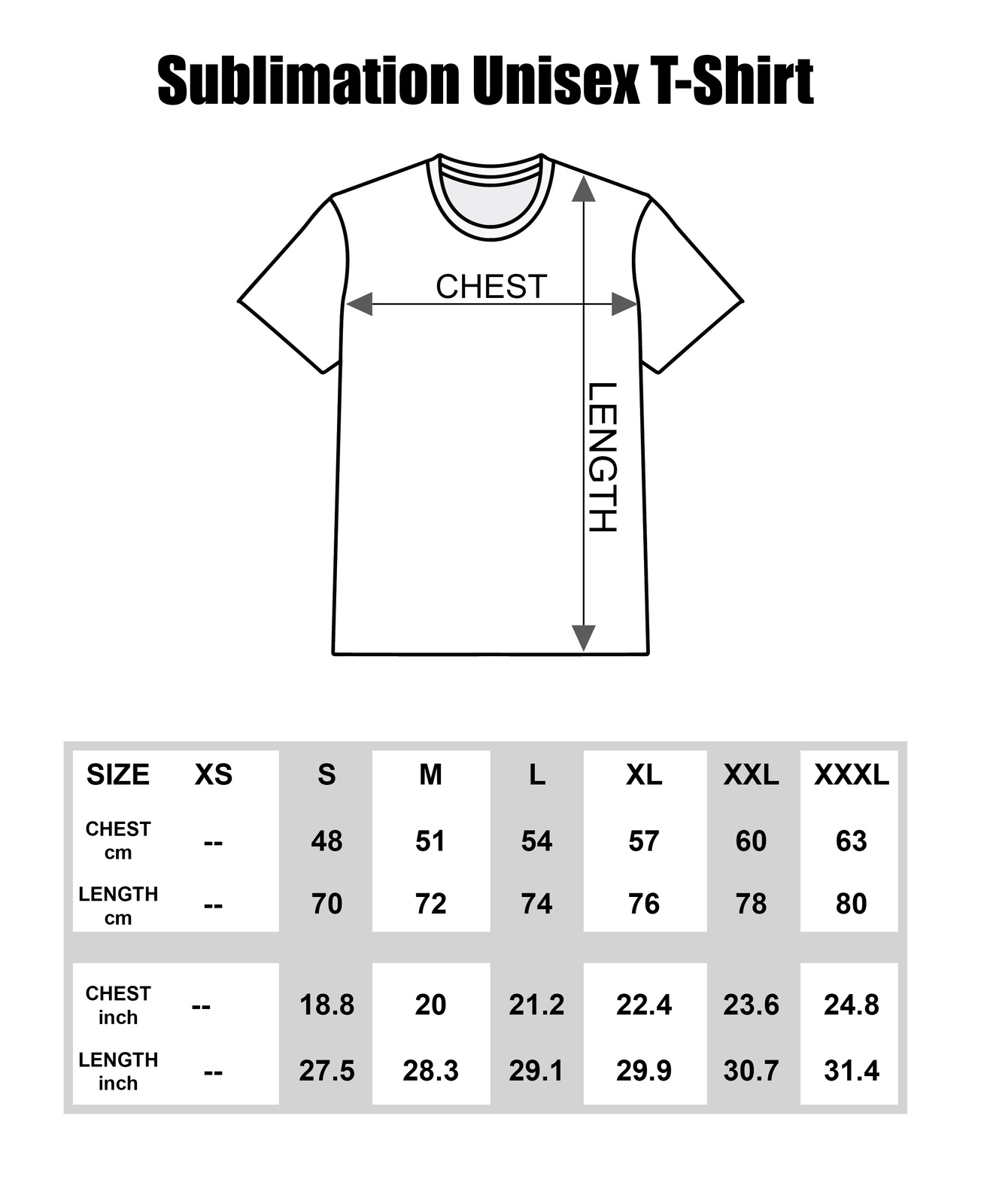 *Note that due to different sizes having different aspect ratios, the shirts shown in the photos is an approximate representation of the final shirt only.