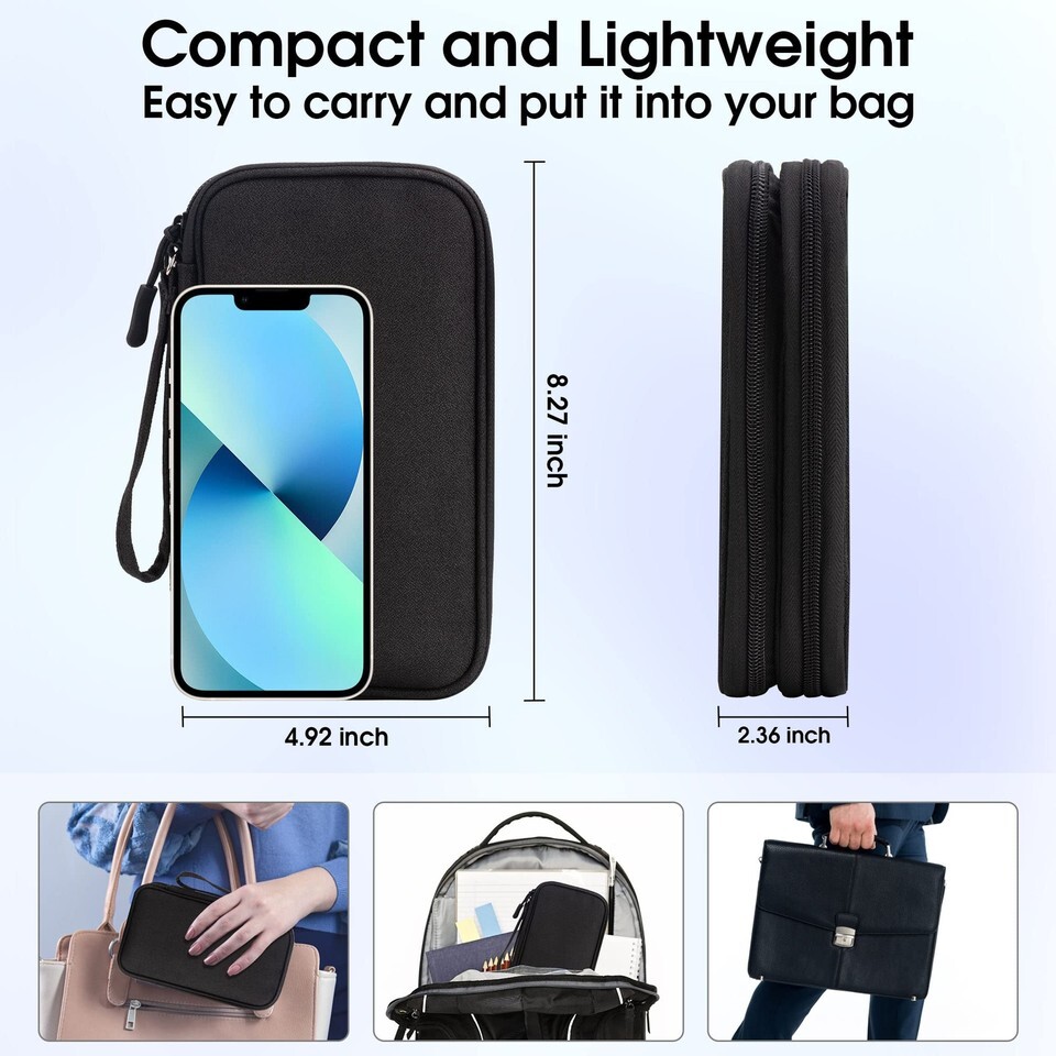 [Double Layers Design]-The electronics storage bag has 2 layers interior compartment with enough space to take in your cords, cables, USB drive, cellphone, charger, mouse, flash drive, and other accessories.