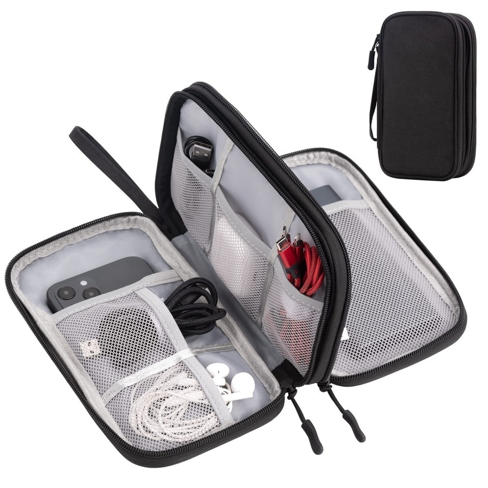 - Arae Travel Electronic Organizer Pouch Black Double Layer Waterproof