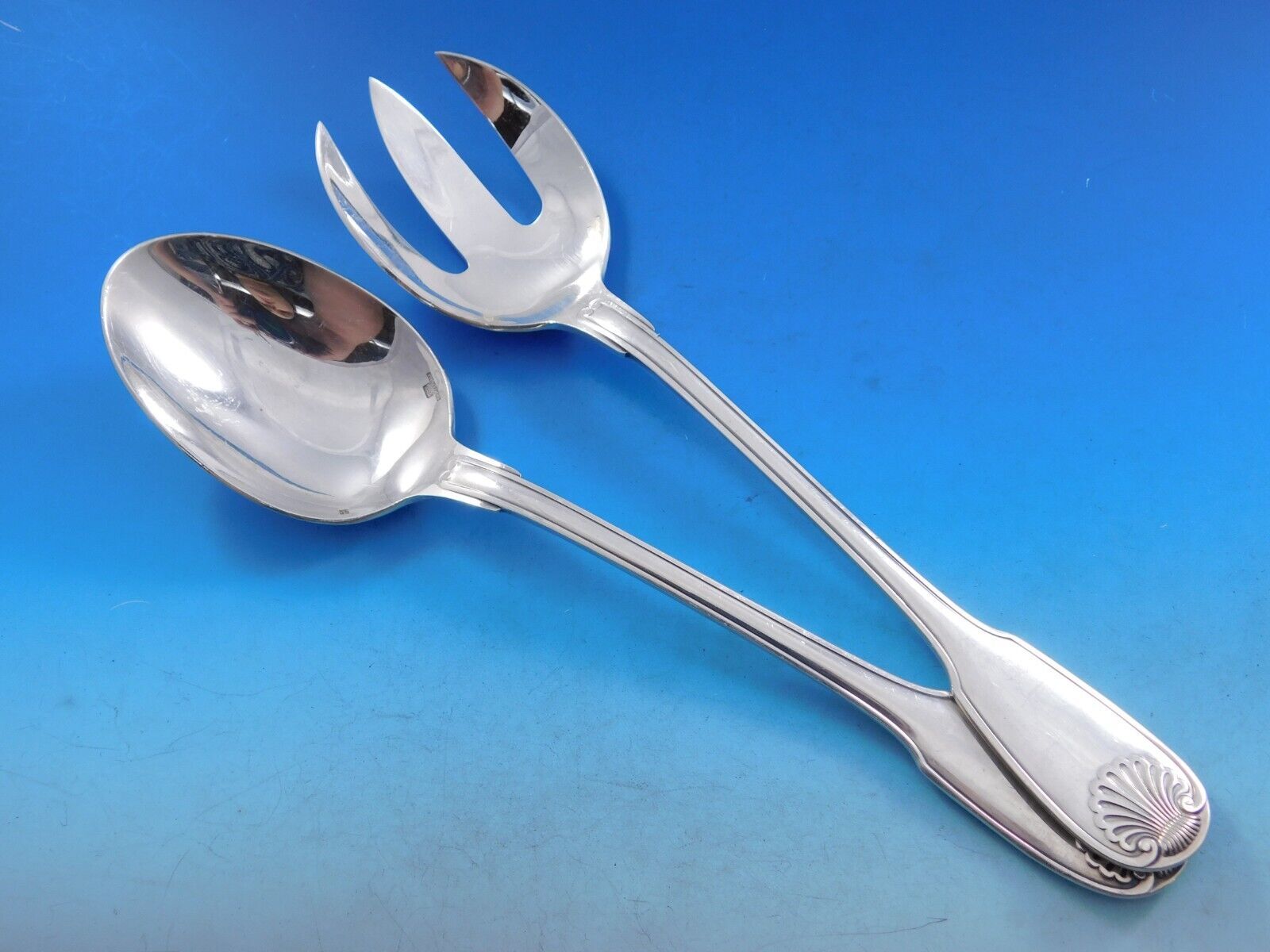 Arcantia aka Vendome by Christofle France Silverplated flatware set, 96 pieces. This pattern features the same shell motif that adorned the ceremonial silverware used during the reign of King Louis XIV. This set includes: