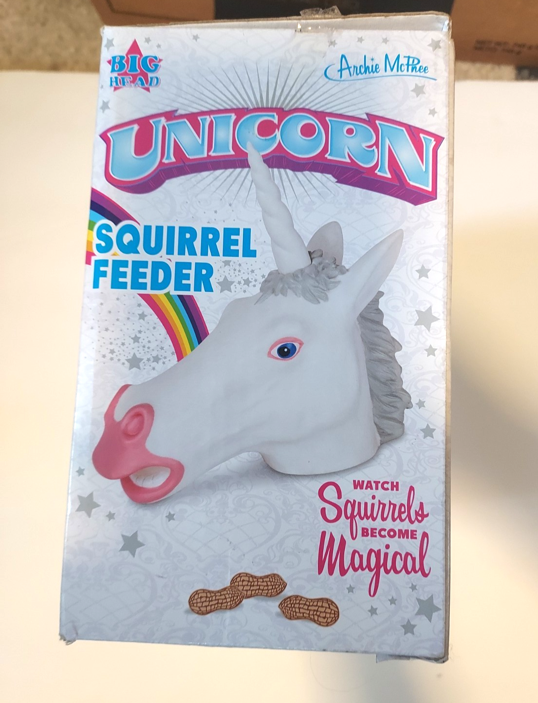 - Archie McPhee Unicorn Squirrel Feeder *Watch Squirrels Become Magical!* Big Head