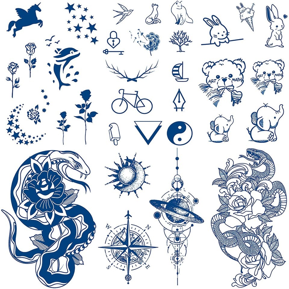- Aresvns Semi-Permanent Waterproof Temporary Tattoo Dark Blue Long-Lasting