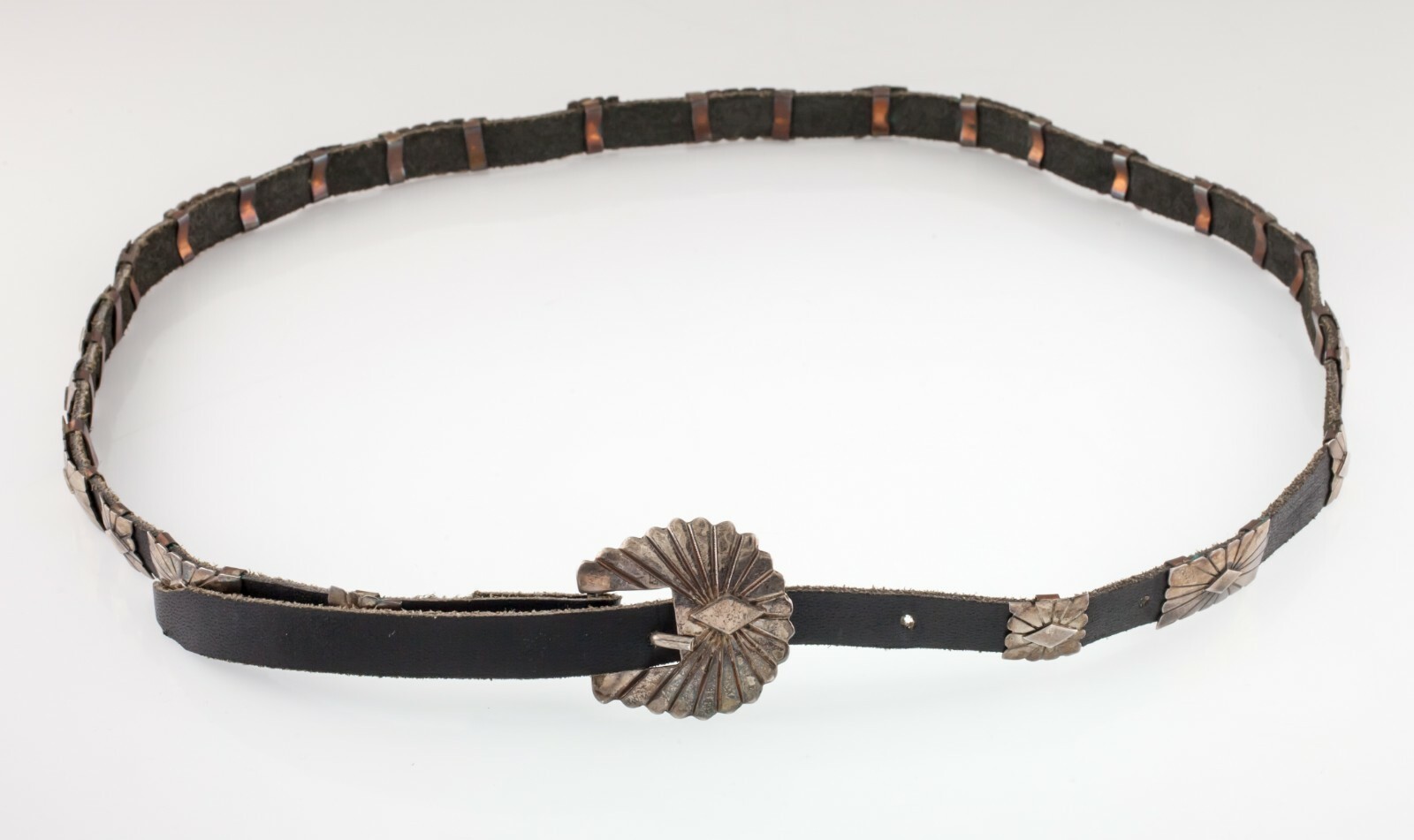 Ceinture de concho en argent non signe avec 12 elements Silver Sunburst Belle patine!