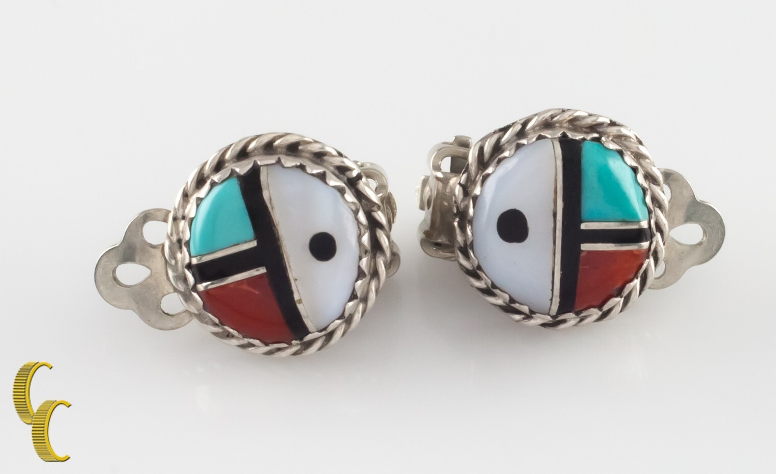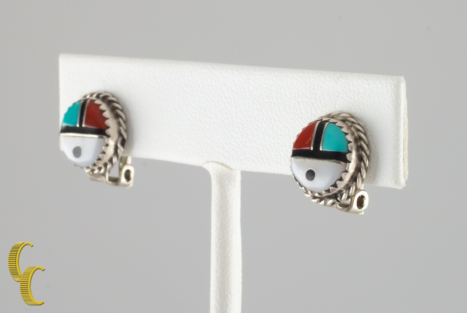 Argento Sterling Lapidario Intarsio Orso Zampa Clip-On Orecchini Zuni