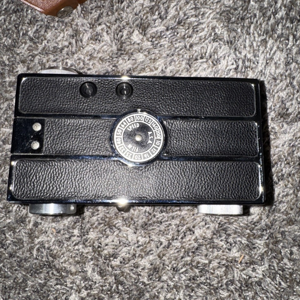 The Argus C3 "Brick" Vintage Rangefinder 35mm Camera is a classic piece of photography equipment that exudes a timeless charm. Made in the United States, this black and silver camera features a durable leather case, adding a touch of sophistication to its retro design. While the functionality of this particular camera is untested, it is sure to appeal to collectors and enthusiasts of vintage photography equipment, who appreciate the craftsmanship and nostalgia of these older models.
