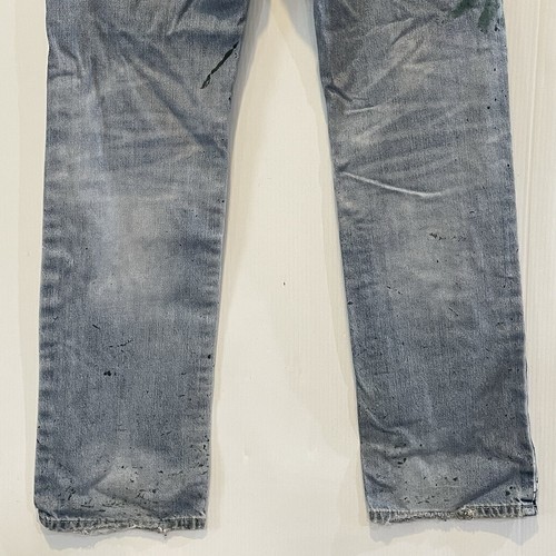 W/Holes Worn Distressed Faded from actual hard work, very worn thighs with holes, worn hems and green paint splatter all over them from painting the pipe fence.