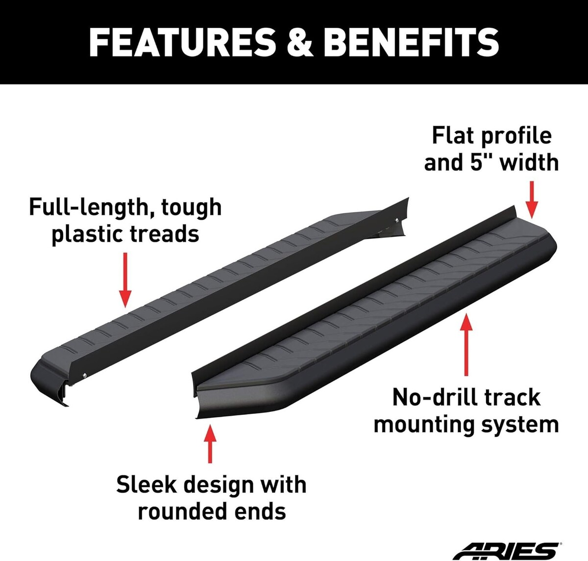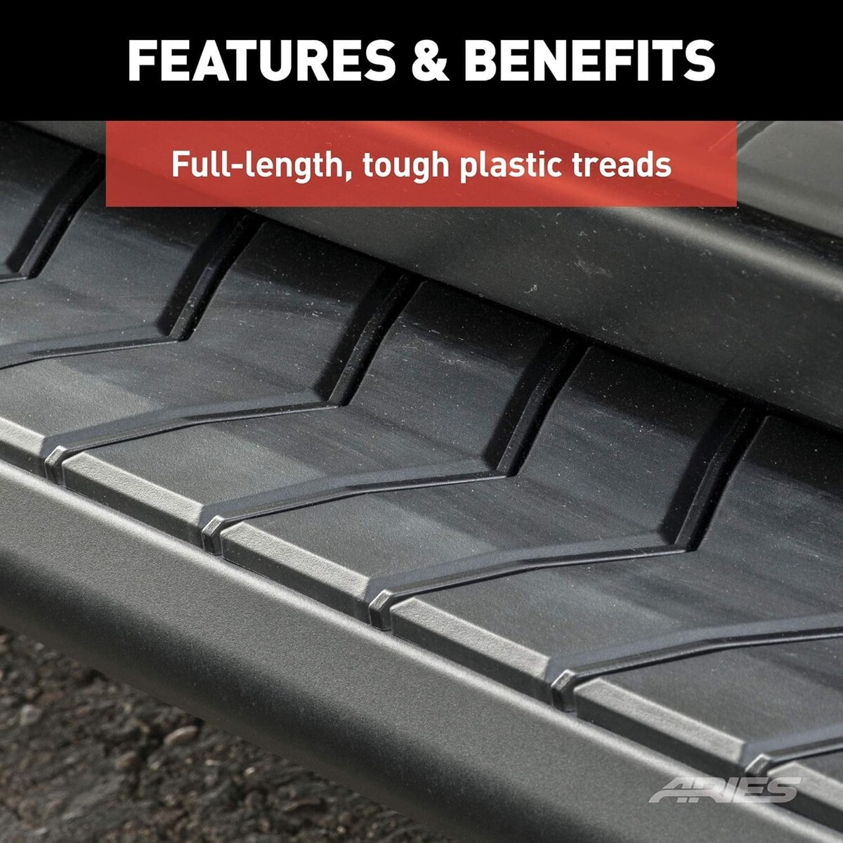 AeroTread running boards are made for both function and appearance. The hard plastic treads feature an aerodynamic-style non-skid pattern that provides firm footing.