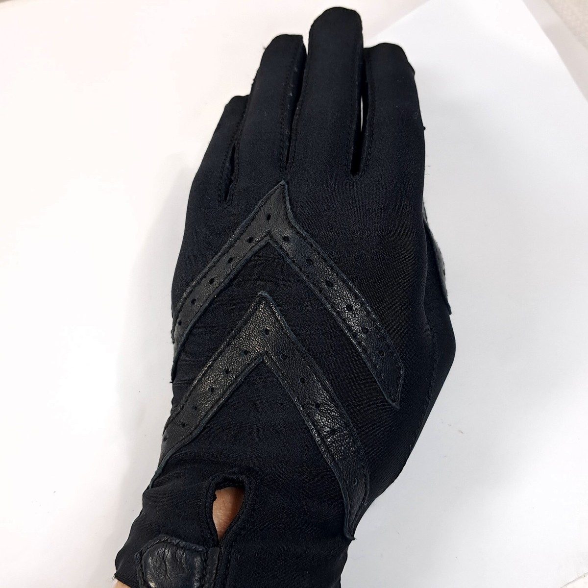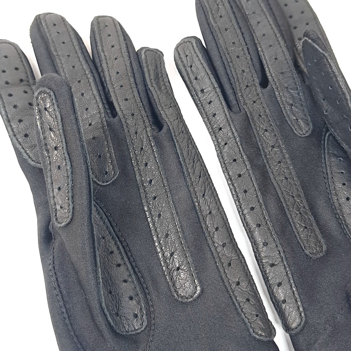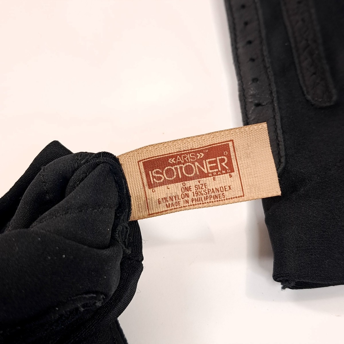 - Aris Isotoner Womens Unlined Black Driving Gloves Nylon Spandex Leather Accents