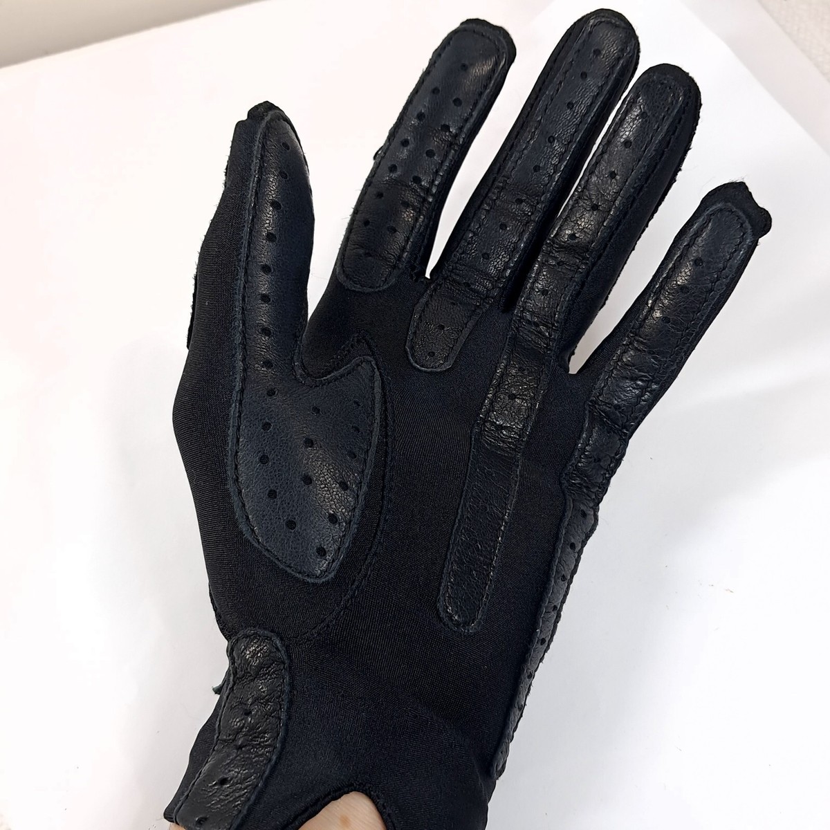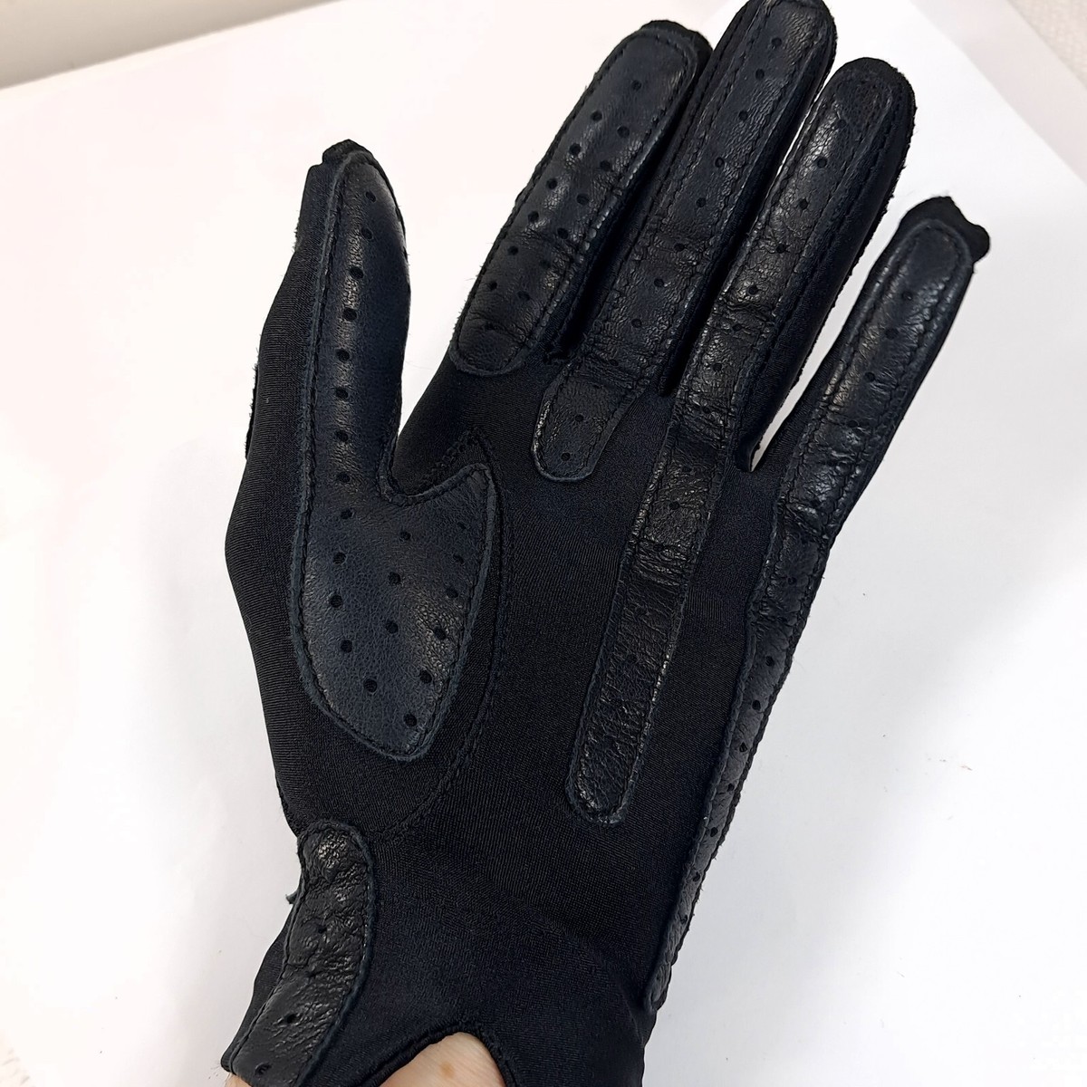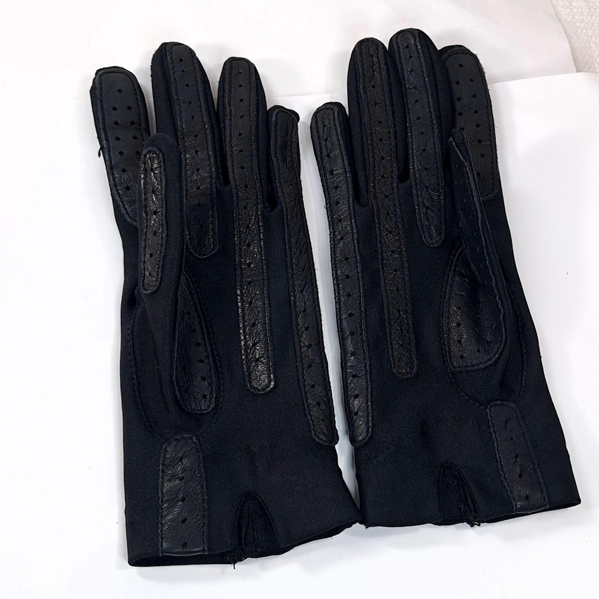 - Aris Isotoner Womens Unlined Black Driving Gloves Nylon Spandex Leather Accents