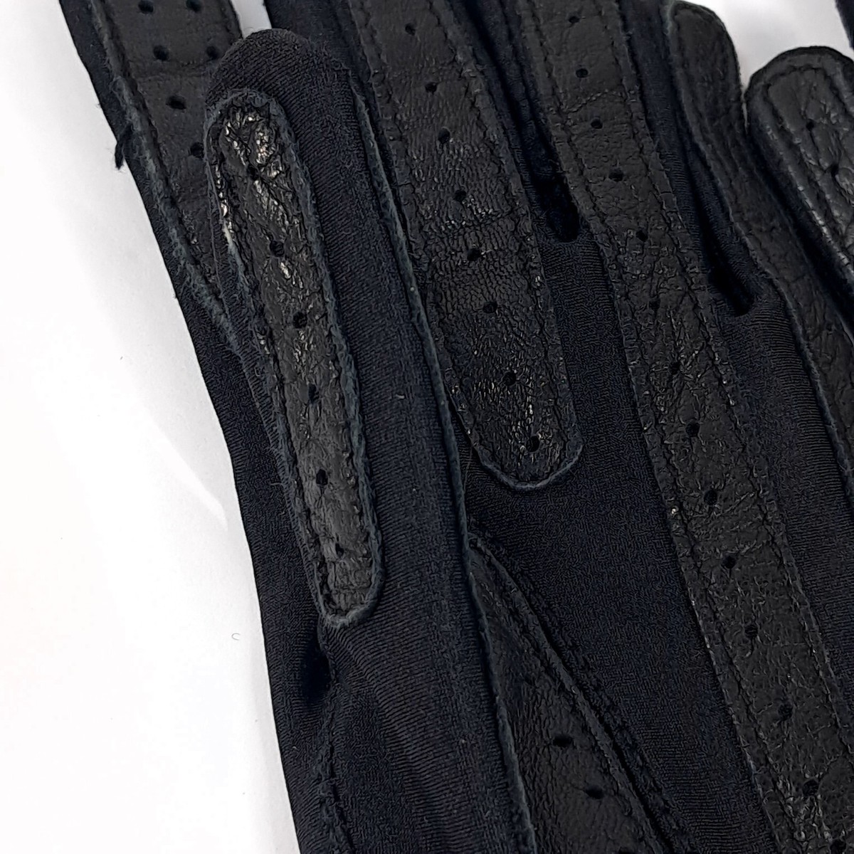 Aris Isotoner Womens Unlined Black Driving Gloves Nylon Spandex Leather Accents