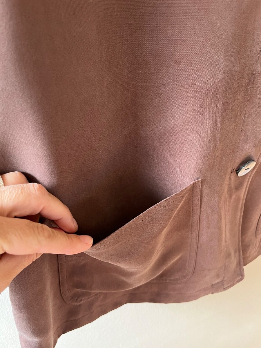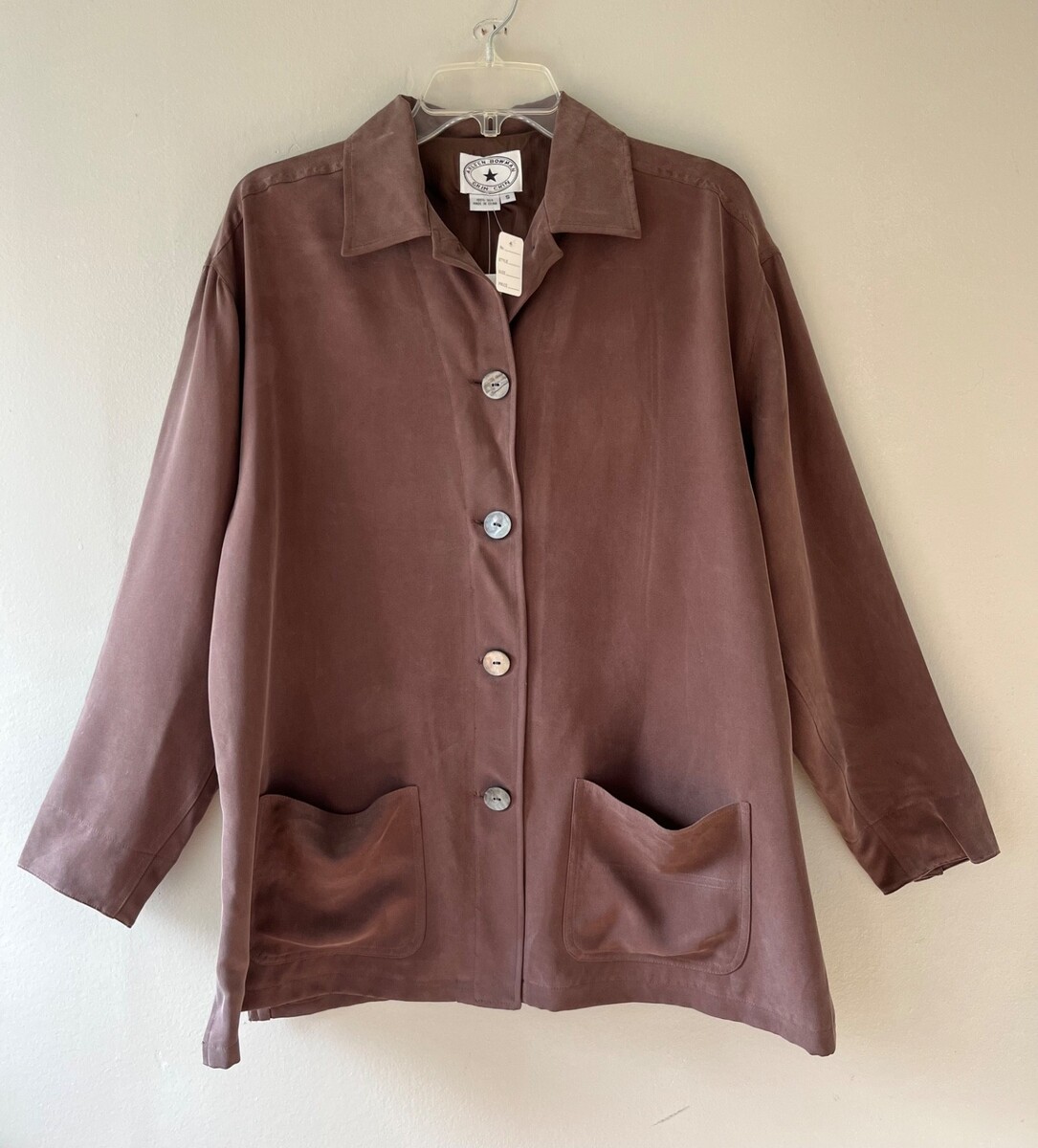 Arleen Bowman Sz M Brown Silk Deluxe Oversized Jacket Blazer Button Down Pockets