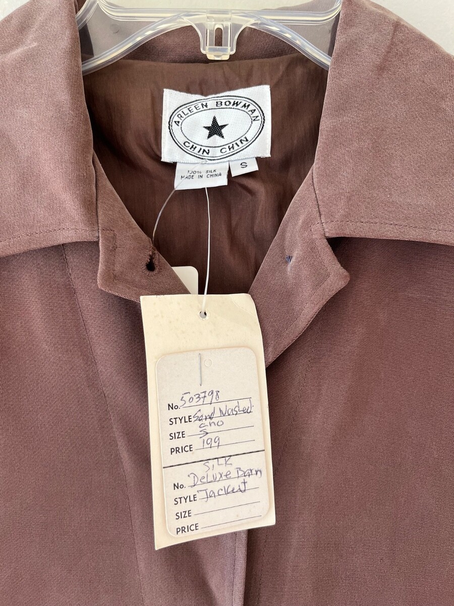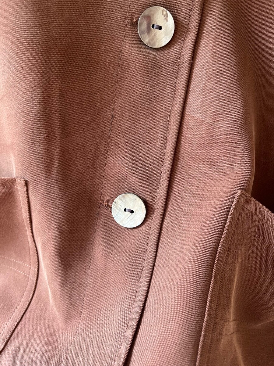 - Arleen Bowman Sz M Brown Silk Deluxe Oversized Jacket Blazer Button Down Pockets