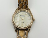 Armitron Gold Tone Crystal Mother Pearl Snake Print Genuine Leather Watch