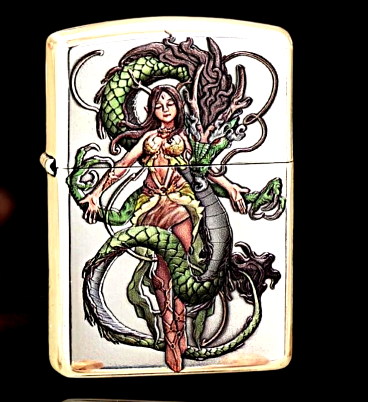 - Armor Embossed Painted Dragon Girl Zippo Lighter