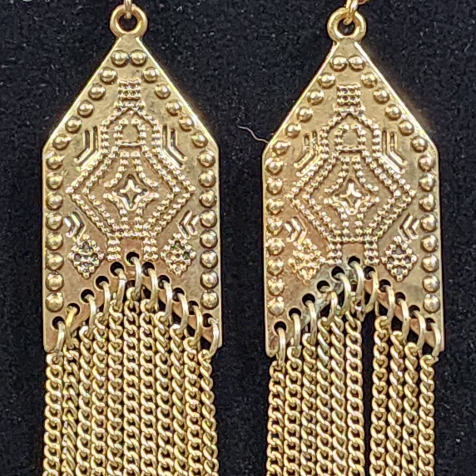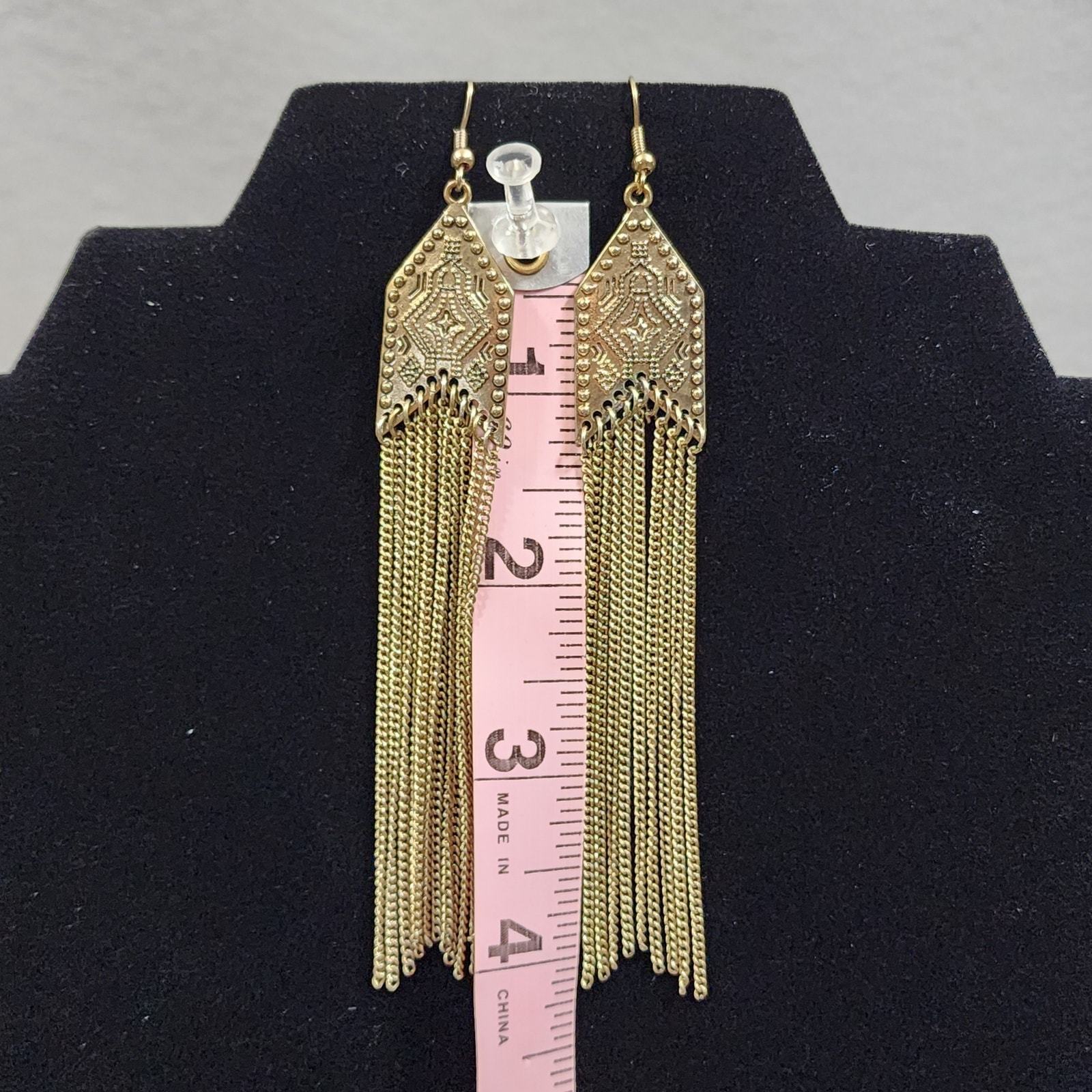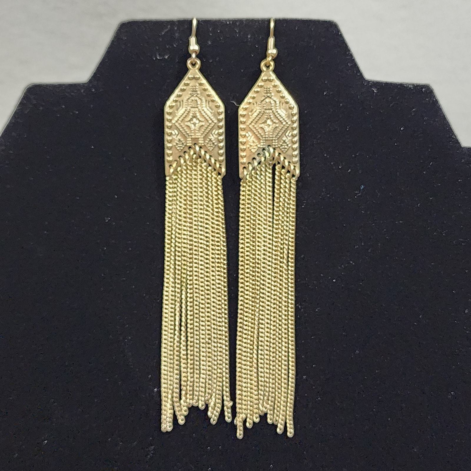 - Arrow Shape Southwestern Motif Chain Tassel Chandelier Pierced Earrings GoldTone