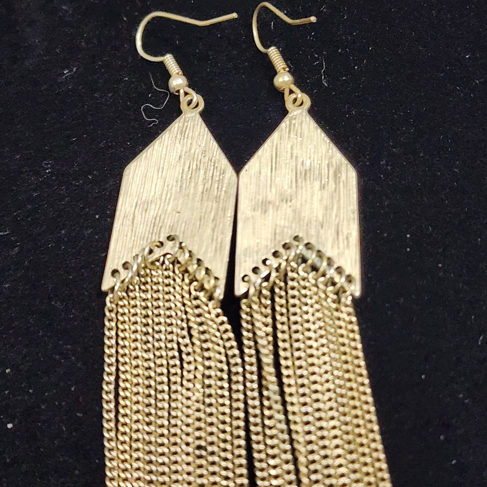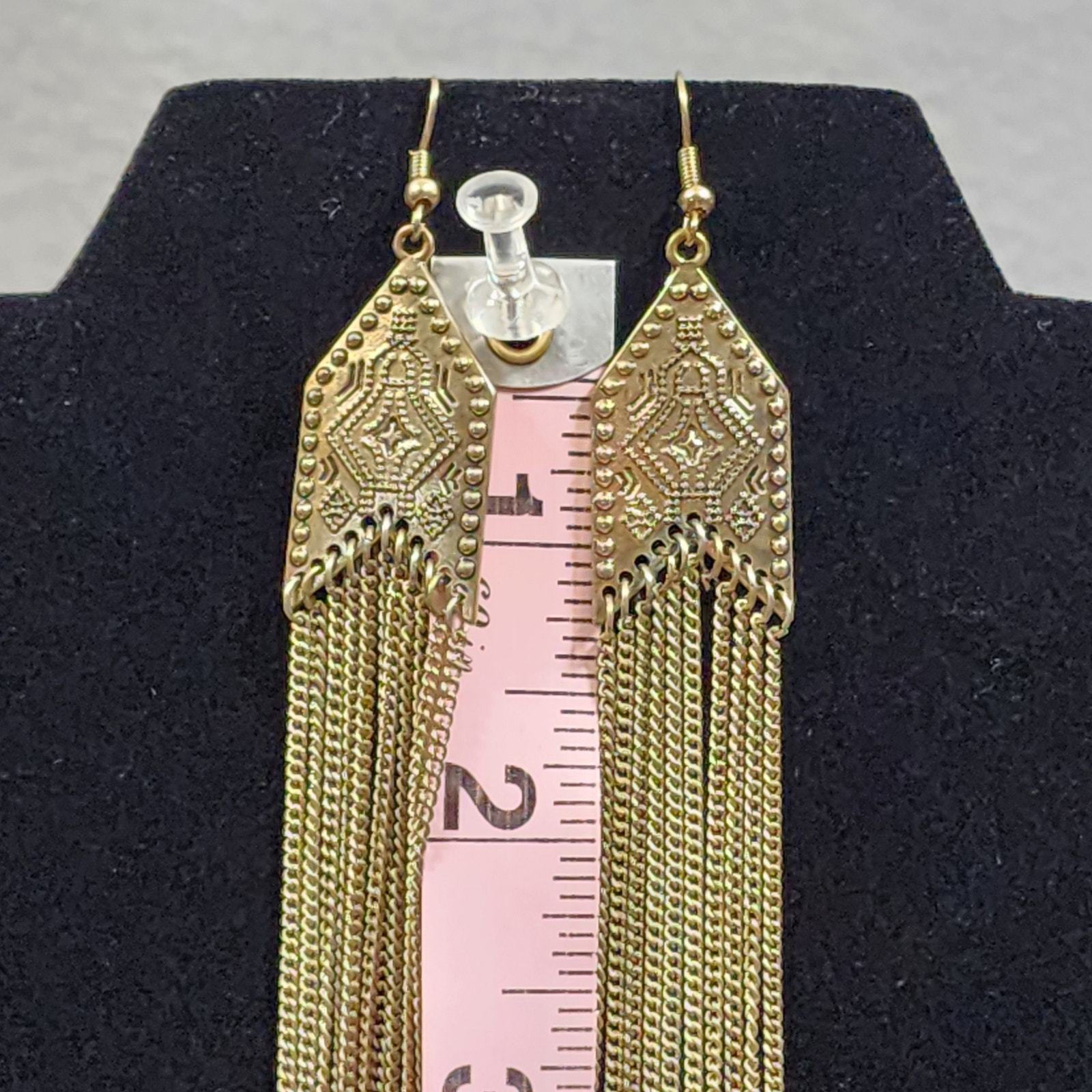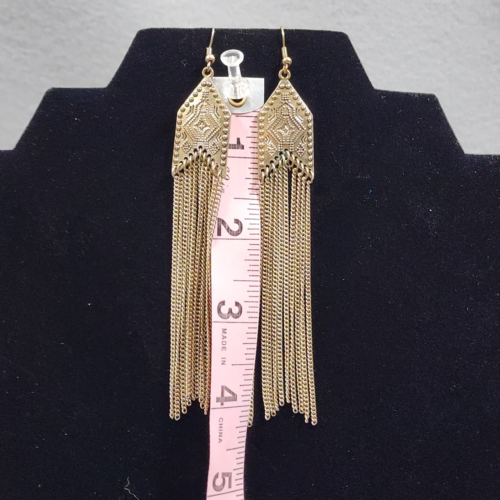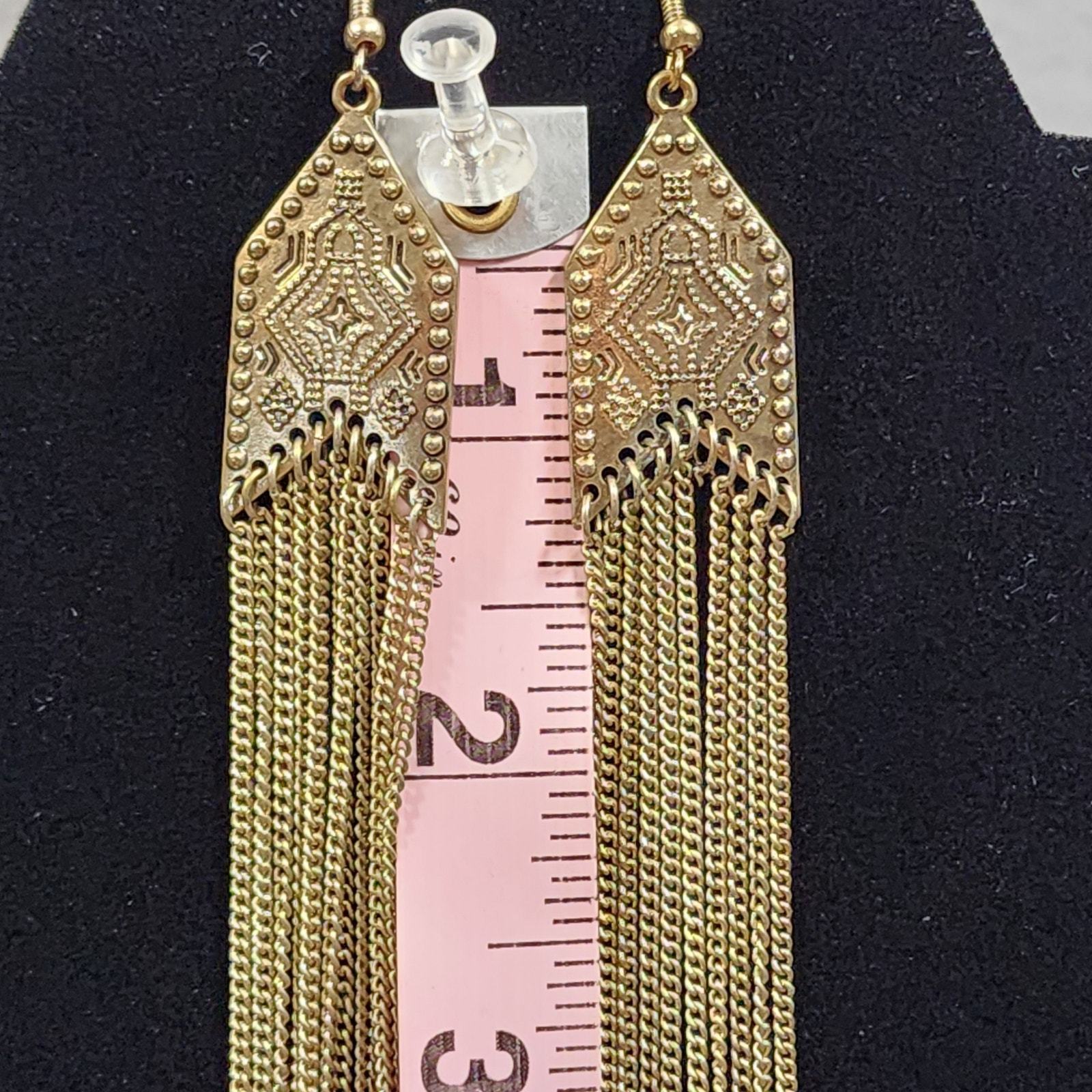 - Arrow Shape Southwestern Motif Chain Tassel Chandelier Pierced Earrings GoldTone