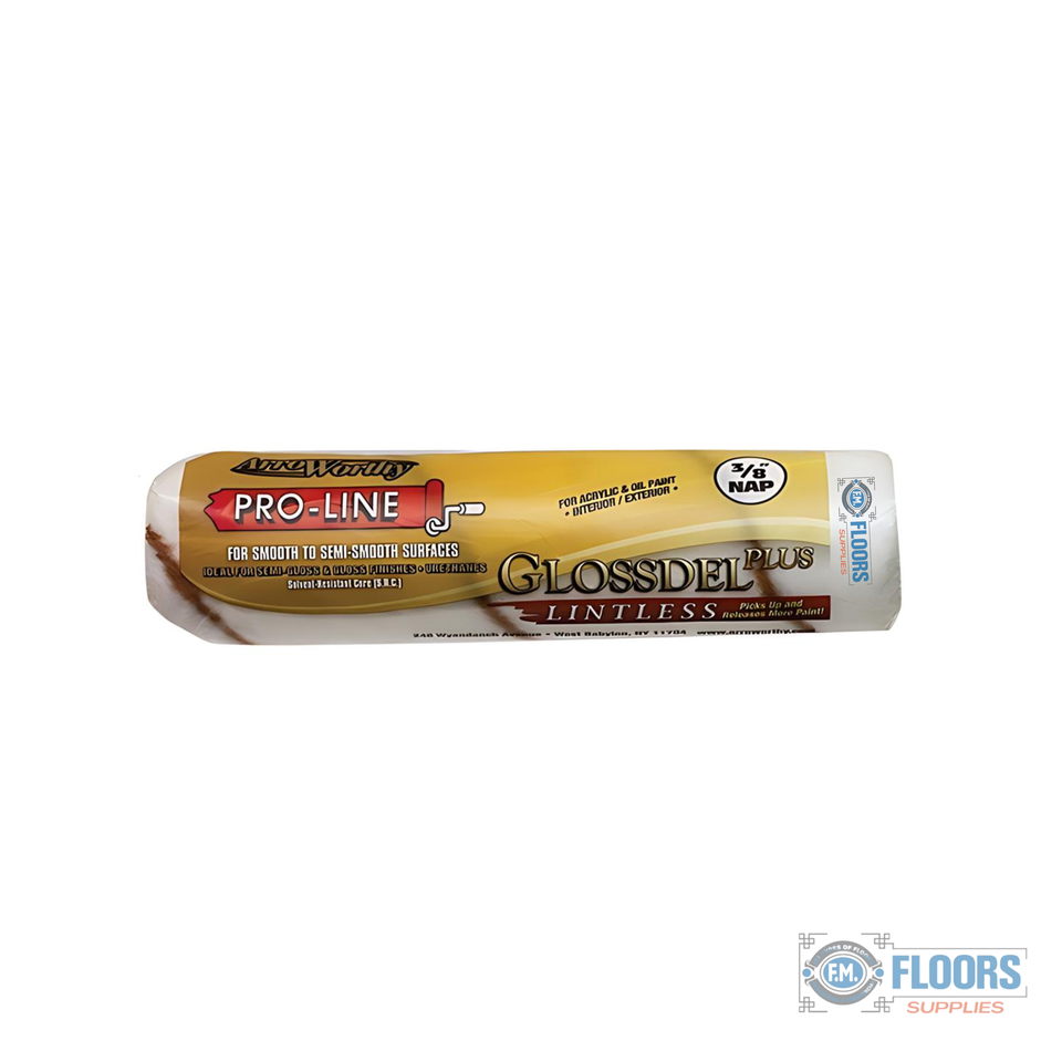 Glossdel Plus An exceptional quality non-shedding woven litless synthetic fabric engineered for interior or exterior applications. It was developed to pick-up, hold and release more of todays paints stains in a faster and more efficient manner. Ideal for high gloss, semi-gloss and eggshell finishes and Urethanes. Good for all alkrd/oil paints. Solvent resistant core (SRC).