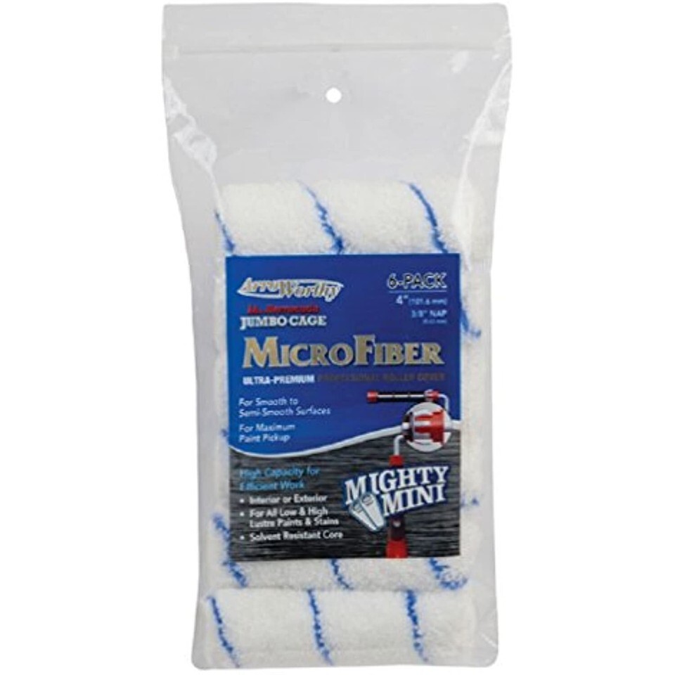Highlights:Roller Cover Width: 4"Nap Length: 3/8"Nap Material: MicrofiberRoller Size: JumboApplication Type: Paints and StainsSurface Application: Smooth to Semi-Smooth SurfacesSuperior paint finishShed-resistant fabricEasy way to get your paint project finished with professional resultsNumber in Package: 6