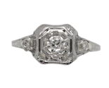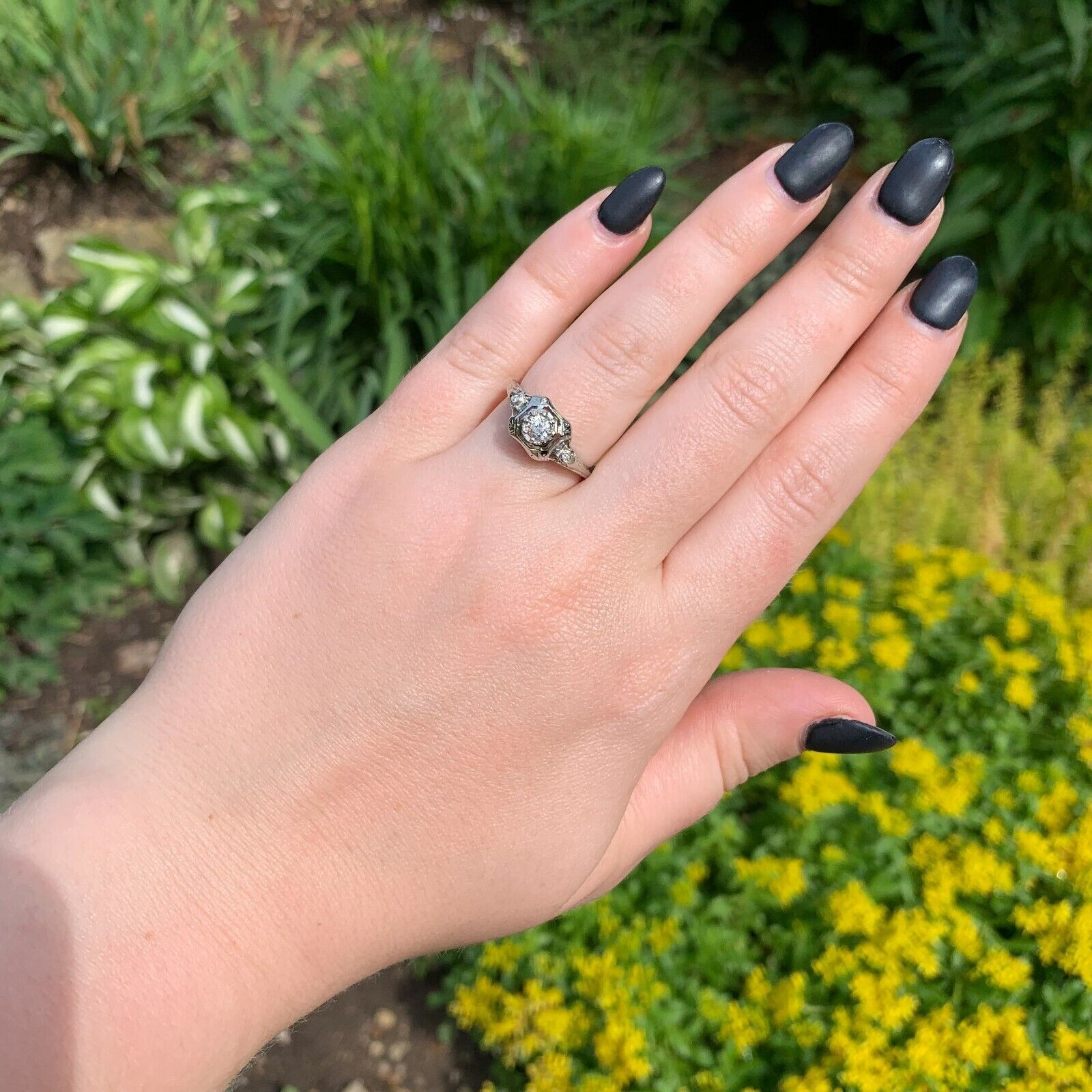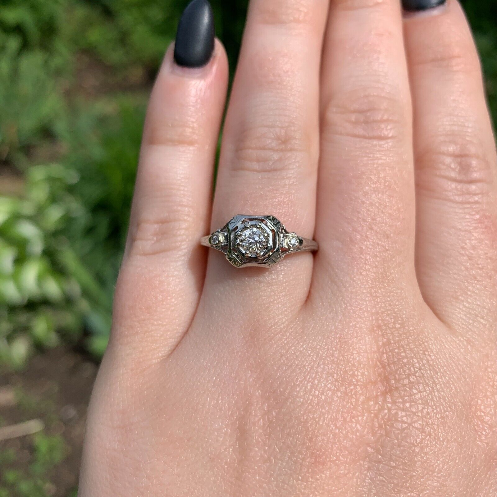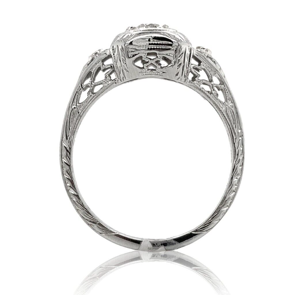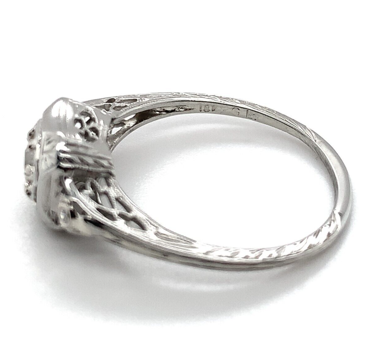 - Art Deco 18k White Gold .23ct Genuine Natural Diamond Filigree Ring (#J6750)