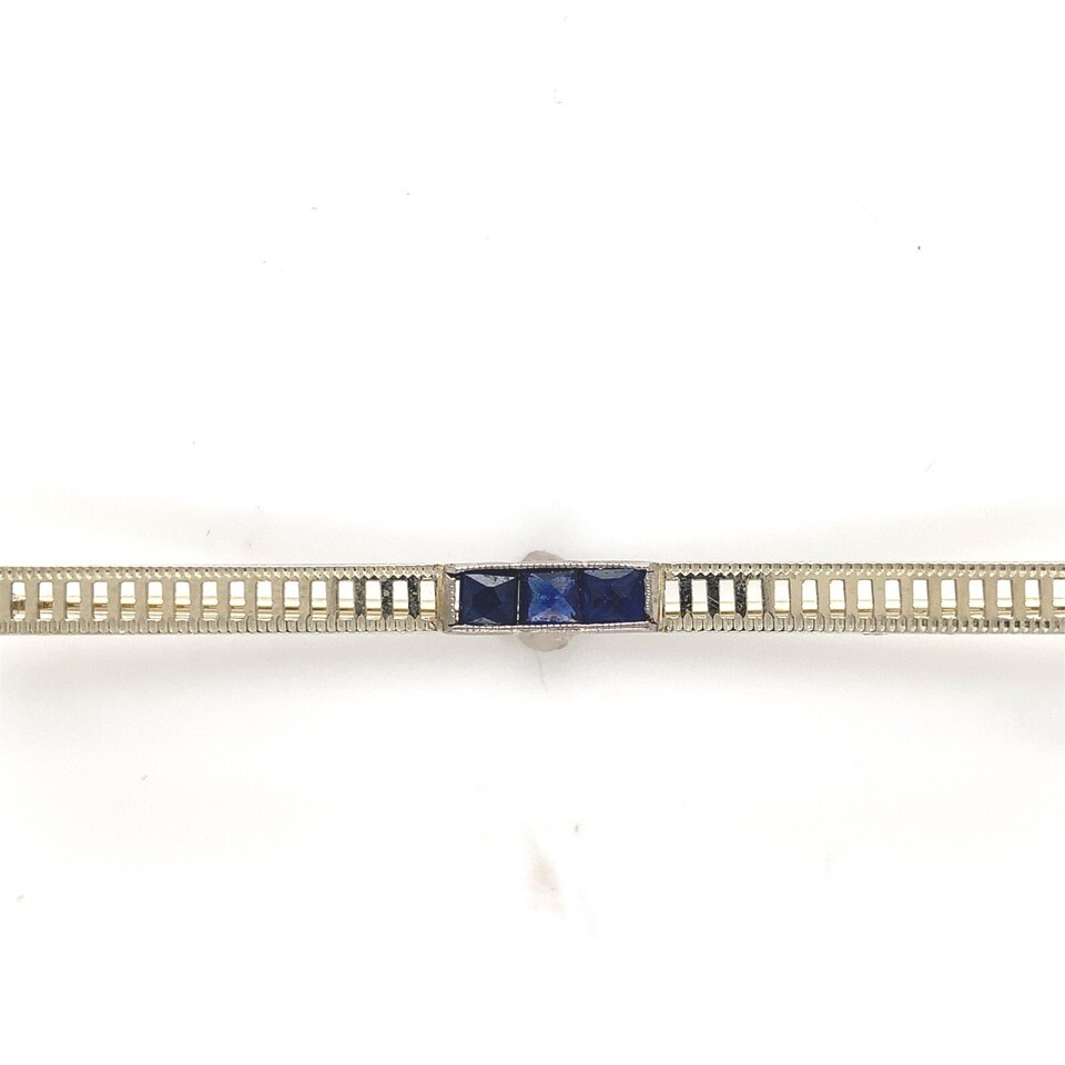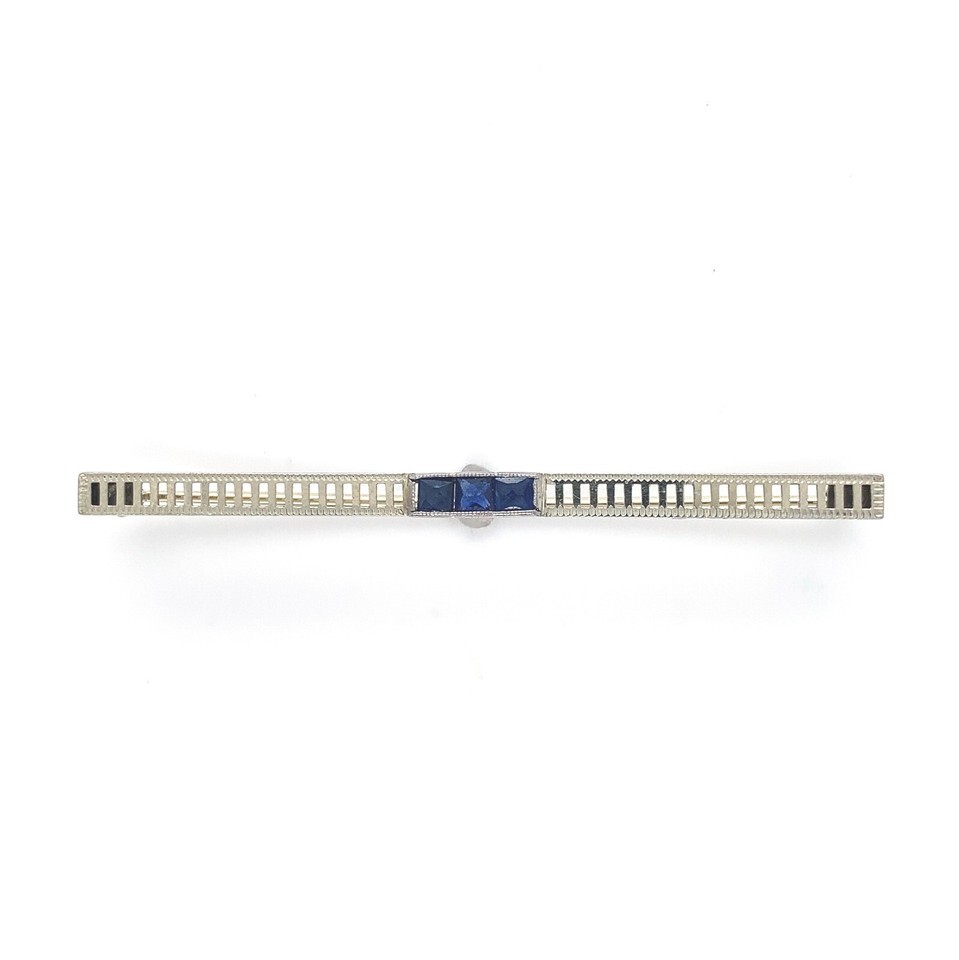 - Art Deco 18k White Gold Bar Pin with Synthetic Lab-Created Sapphires (#J6450)