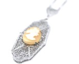 - Art Deco 1920s Filigree Cameo Pendant Necklace Downton Gatsby Fancy 16" Chain
