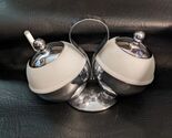 Art Deco Chase & Co Cromo Leche Cristal Doble Servidor De Condimentos Cucharas