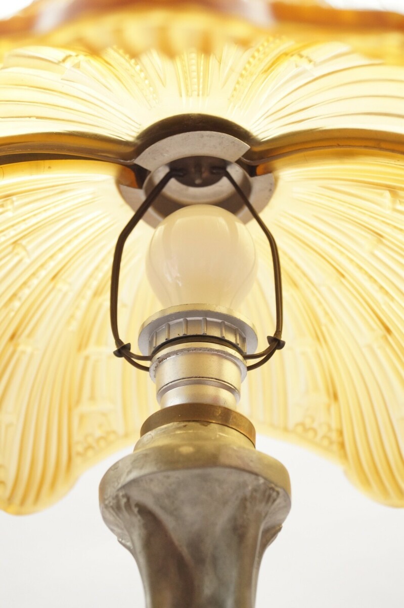 - Art Deco Lamp Ornate Light "AMBER SHELL" Figurine Collector's Item Signed Light