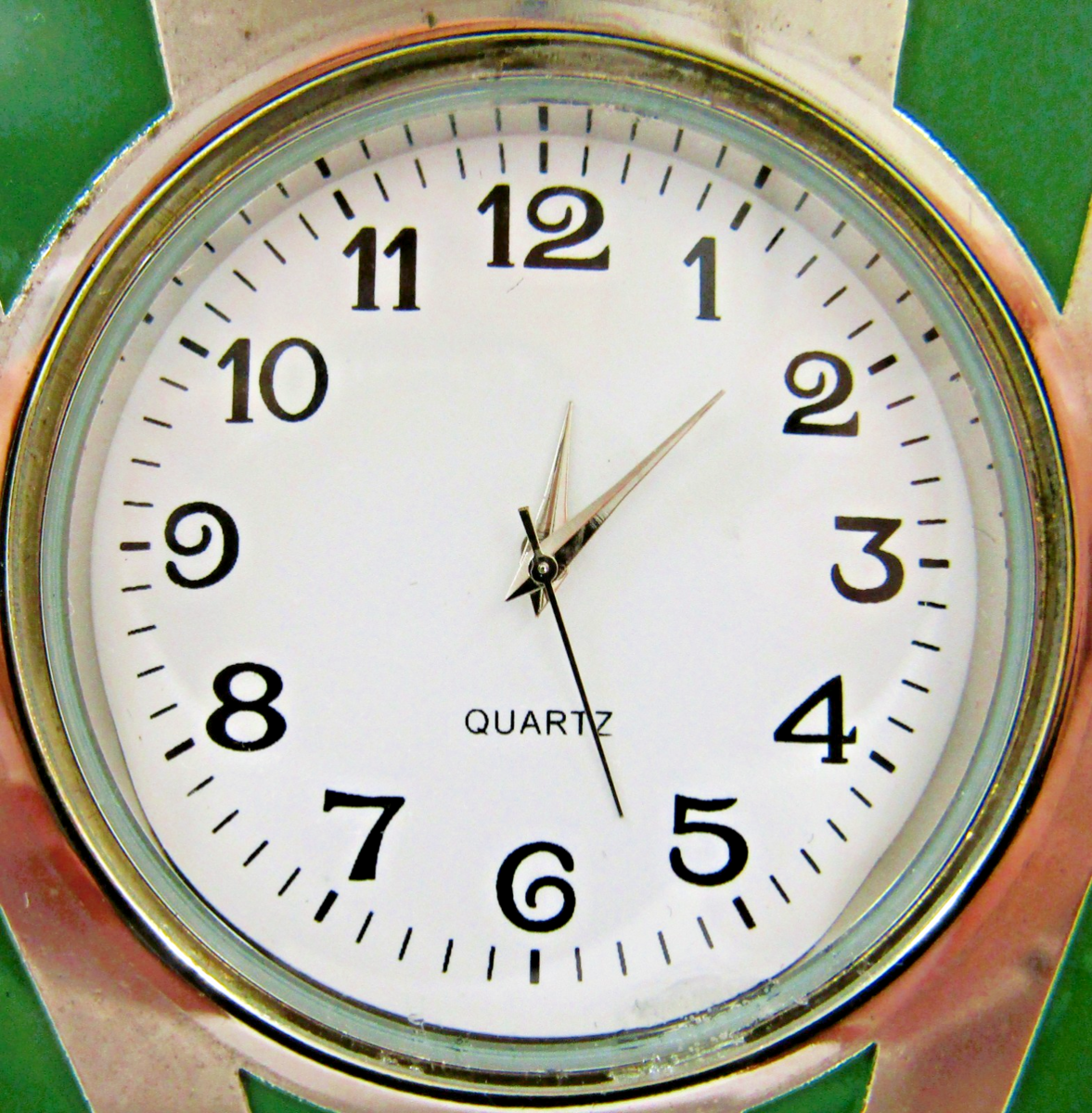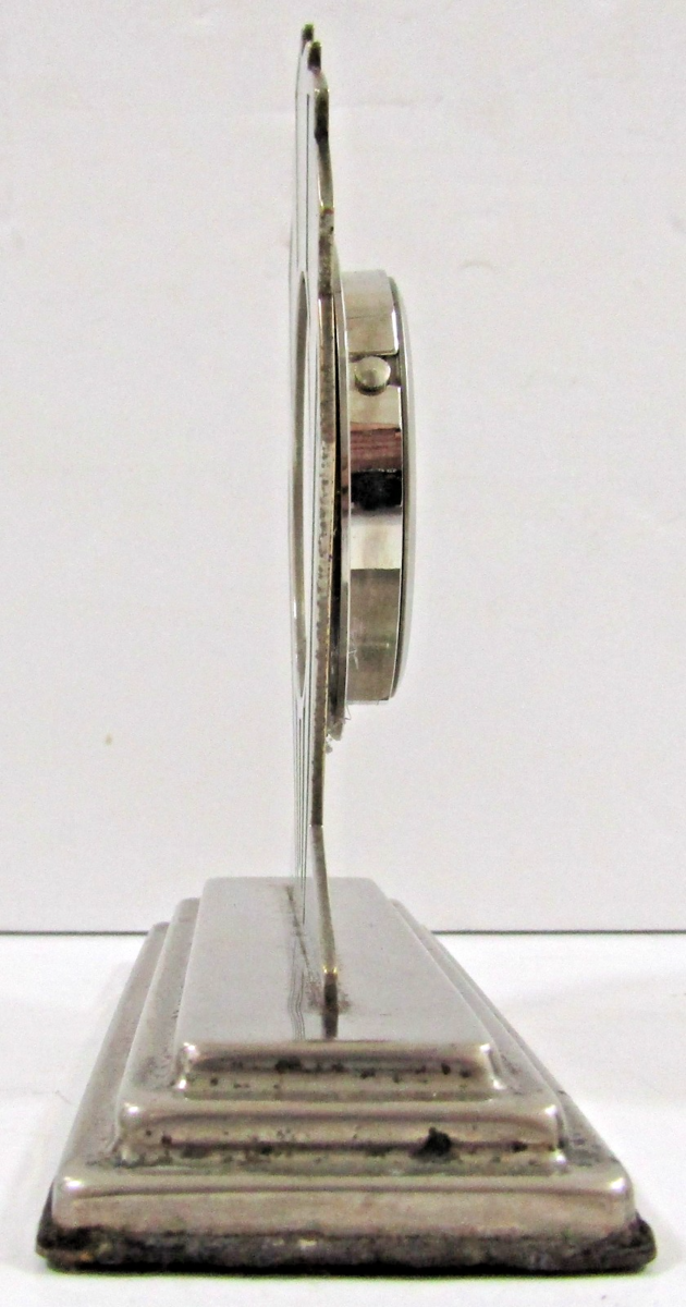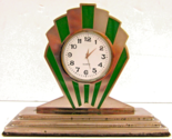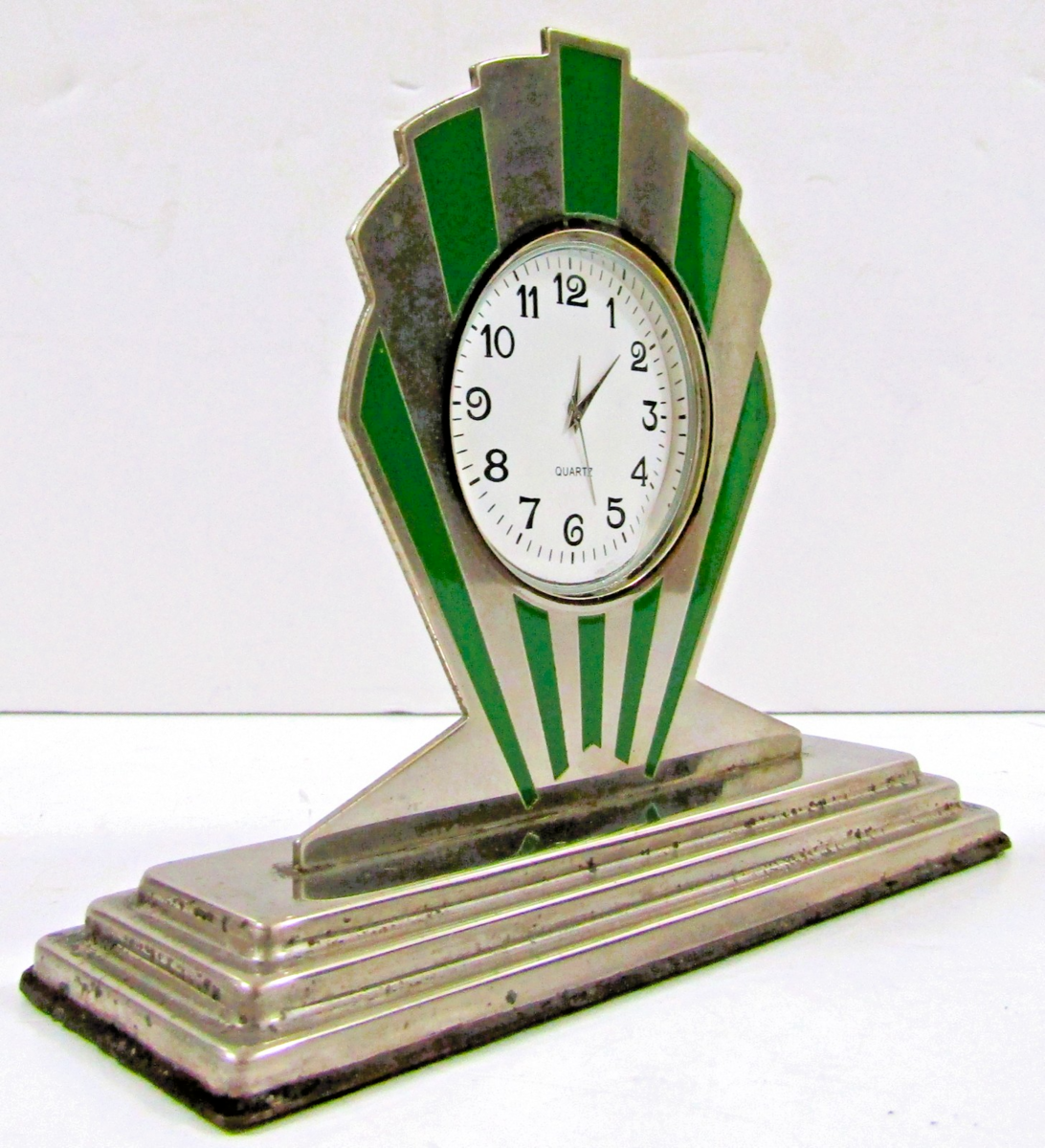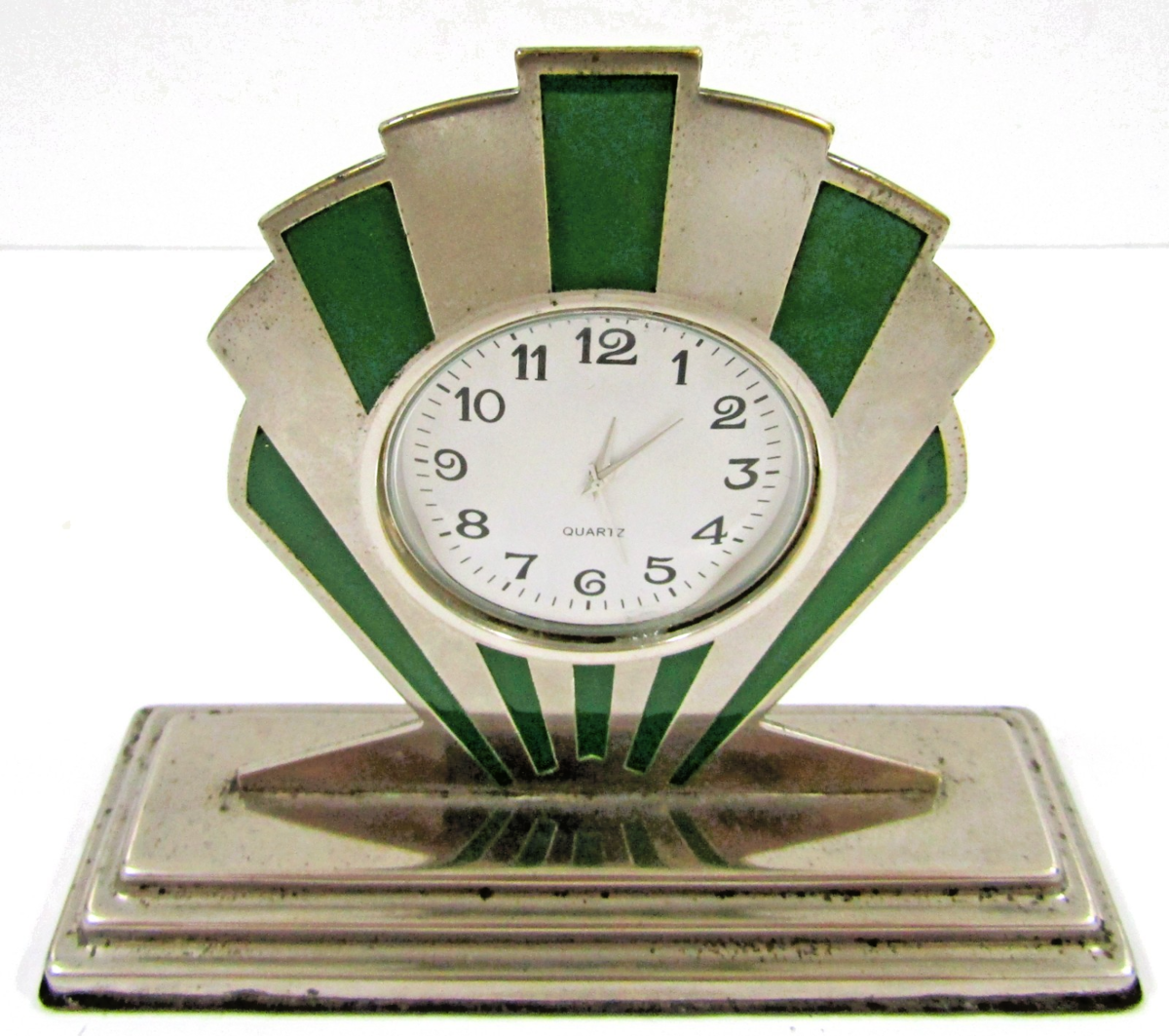 - Art Deco Small Chrome Silver and Green Desk Clock