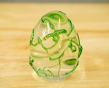 - Art Glass Artisan Paperweight Egg Shaped Green Vine Abstract Overlay 3.5" Tall